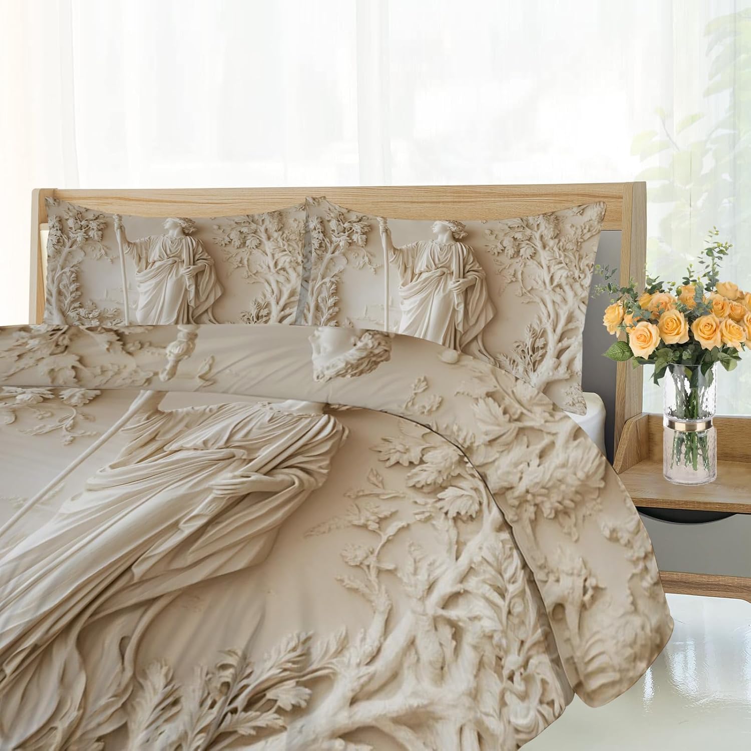 Express Your Personality Through Bold PrintsYour bedroom should reflect you — this printed duvet cover set adds personality and charm with a wide selection of artistic patterns. Whether your style is calm and minimal or vibrant and playful, there's a design to complement any mood or interior.Soft, Breathable, and Year-Round ComfortableCrafted from premium microfiber, this duvet cover feels smooth and skin-friendly. Lightweight yet cozy, it's breathable for summer and insulating for cooler nights — perfect for all-season use.Fade-Resistant Colors that LastPrinted using advanced reactive dyeing, our patterns stay rich and vibrant after repeated washes. No fading, no bleeding — just long-lasting style that holds up over time.Thoughtful Details for Effortless UseHidden zipper closure keeps the look clean and makes insert changes quick.Four interior corner ties prevent the duvet from bunching or shifting at night.Durable stitching ensures long-term reliability and washability.Complete Set, Effortless MakeoverEach set includes:1 Duvet Cover(Twin size measures 68 by 86-inch)2 Matching Pillowcases(Pillow Cases 20 by 26-inch)NOTE: Comforter and Sheet Not IncludedPerfect for bedrooms, dorms, guest rooms, or as a gift — it’s a quick, stylish upgrade for any bed.Comfort Meets CreativityMake a statement with your bedding. Whether decorating your space or gifting someone special, this printed duvet cover set blends comfort, quality, and personality — all in one.