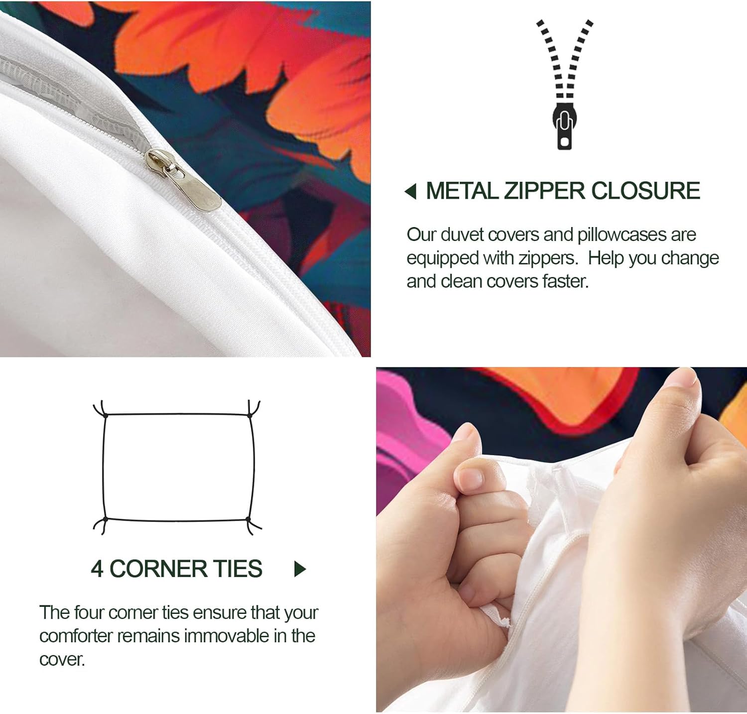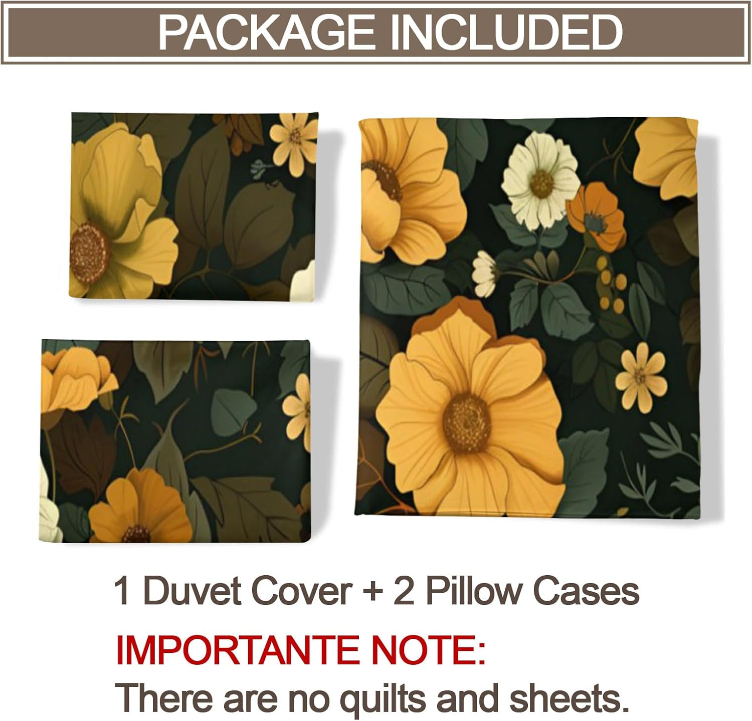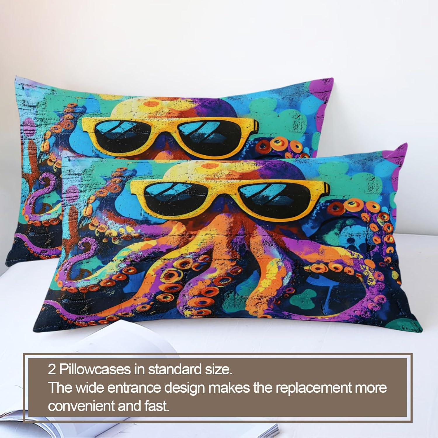 Express Your Personality Through Bold PrintsYour bedroom should reflect you — this printed duvet cover set adds personality and charm with a wide selection of artistic patterns. Whether your style is calm and minimal or vibrant and playful, there's a design to complement any mood or interior.Soft, Breathable, and Year-Round ComfortableCrafted from premium microfiber, this duvet cover feels smooth and skin-friendly. Lightweight yet cozy, it's breathable for summer and insulating for cooler nights — perfect for all-season use.Fade-Resistant Colors that LastPrinted using advanced reactive dyeing, our patterns stay rich and vibrant after repeated washes. No fading, no bleeding — just long-lasting style that holds up over time.Thoughtful Details for Effortless UseHidden zipper closure keeps the look clean and makes insert changes quick.Four interior corner ties prevent the duvet from bunching or shifting at night.Durable stitching ensures long-term reliability and washability.Complete Set, Effortless MakeoverEach set includes:1 Duvet Cover(Twin size measures 68 by 86-inch)2 Matching Pillowcases(Pillow Cases 20 by 26-inch)NOTE: Comforter and Sheet Not IncludedPerfect for bedrooms, dorms, guest rooms, or as a gift — it’s a quick, stylish upgrade for any bed.Comfort Meets CreativityMake a statement with your bedding. Whether decorating your space or gifting someone special, this printed duvet cover set blends comfort, quality, and personality — all in one.