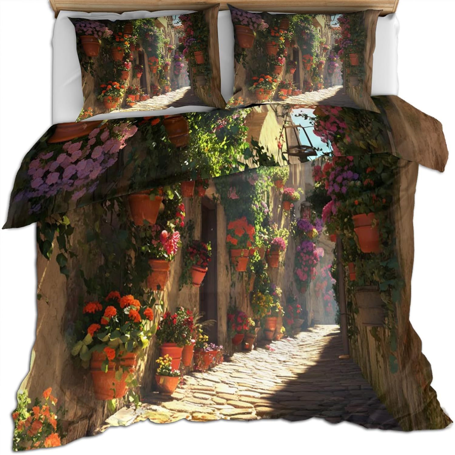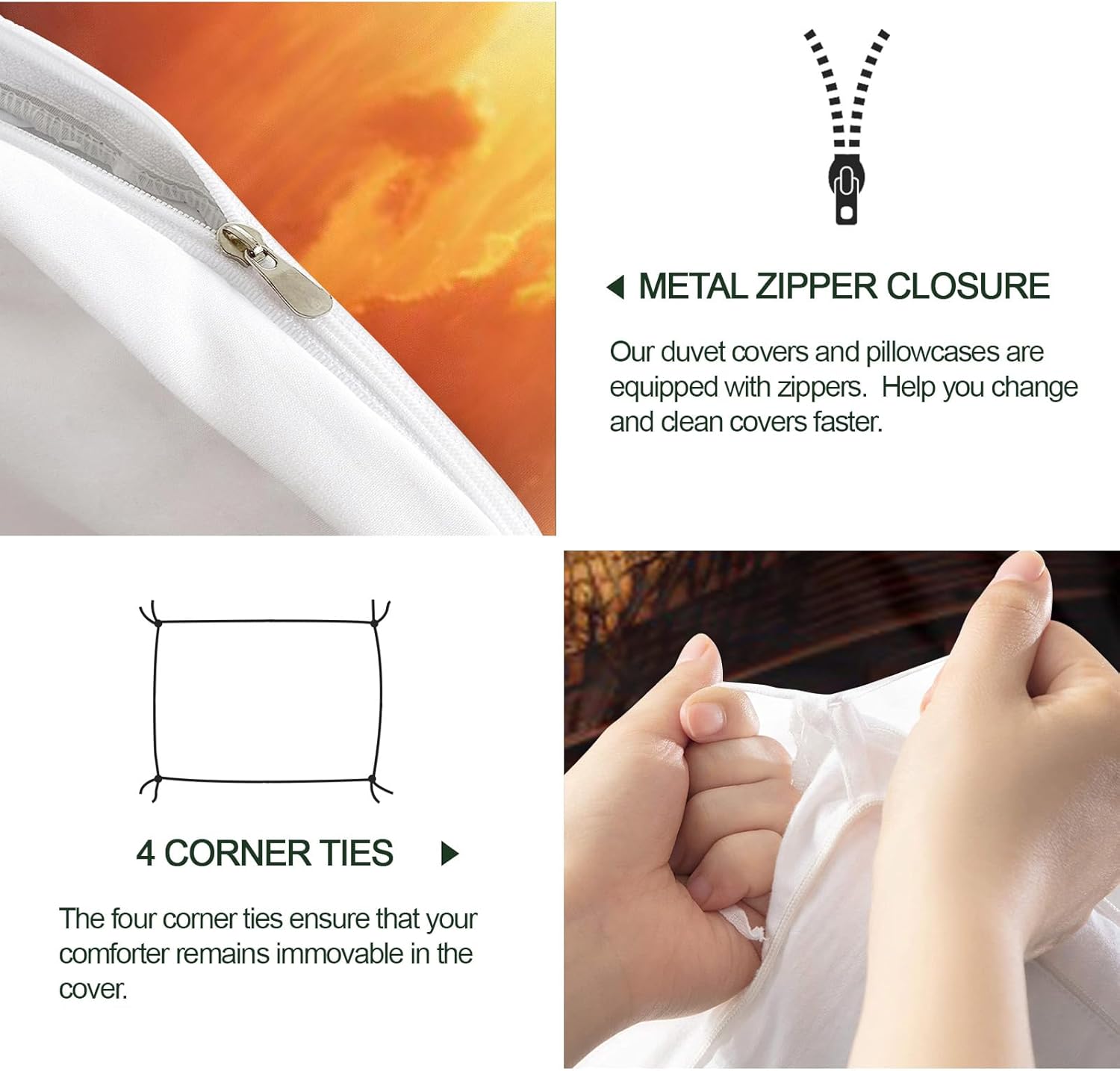 Express Your Personality Through Bold PrintsYour bedroom should reflect you — this printed duvet cover set adds personality and charm with a wide selection of artistic patterns. Whether your style is calm and minimal or vibrant and playful, there's a design to complement any mood or interior.Soft, Breathable, and Year-Round ComfortableCrafted from premium microfiber, this duvet cover feels smooth and skin-friendly. Lightweight yet cozy, it's breathable for summer and insulating for cooler nights — perfect for all-season use.Fade-Resistant Colors that LastPrinted using advanced reactive dyeing, our patterns stay rich and vibrant after repeated washes. No fading, no bleeding — just long-lasting style that holds up over time.Thoughtful Details for Effortless UseHidden zipper closure keeps the look clean and makes insert changes quick.Four interior corner ties prevent the duvet from bunching or shifting at night.Durable stitching ensures long-term reliability and washability.Complete Set, Effortless MakeoverEach set includes:1 Duvet Cover(Twin size measures 68 by 86-inch)2 Matching Pillowcases(Pillow Cases 20 by 26-inch)NOTE: Comforter and Sheet Not IncludedPerfect for bedrooms, dorms, guest rooms, or as a gift — it’s a quick, stylish upgrade for any bed.Comfort Meets CreativityMake a statement with your bedding. Whether decorating your space or gifting someone special, this printed duvet cover set blends comfort, quality, and personality — all in one.