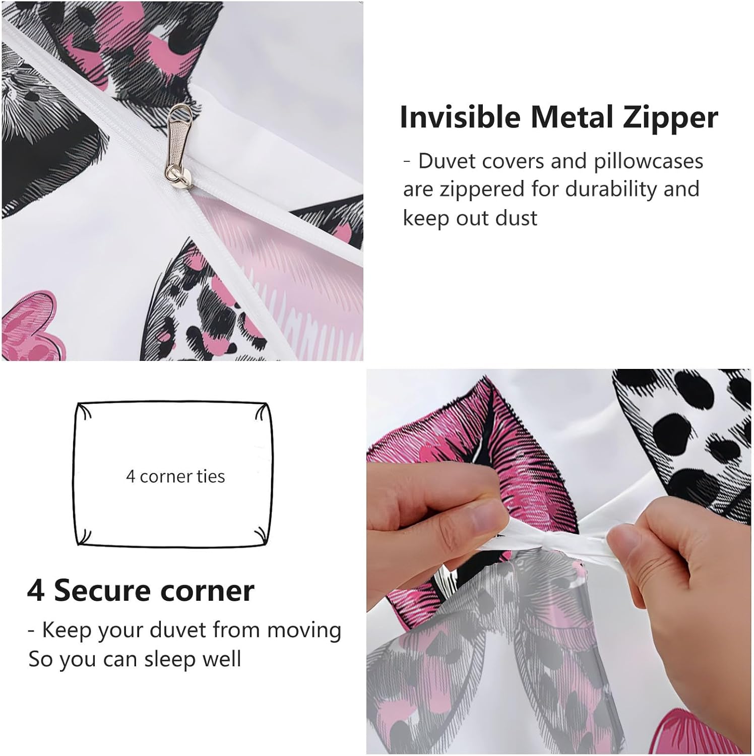 Transform Your Bedroom with Our Brushed Microfiber Duvet Cover Sets Ultra-Soft Brushed Microfiber for Year-Round Comfort Made from soft brushed microfiber, this lightweight duvet cover is warm, gentle on skin, and perfect for year-round comfort Reversible Design with Fade-Resistant Print Featuring the same beautiful pattern on both sides, the reversible duvet cover allows you to refresh your bedroom look effortlessly. Eco-friendly, fade-resistant dyes ensure vibrant colors wash after wash, safe for kids and adults alike Secure Fit with Hidden Zipper & Corner Ties Keep your comforter in place with the hidden zipper closure and 4 corner ties. Compatible with quilts, down, or alternative inserts, this design prevents shifting and maintains a polished, comfortable bed every night Sizes: Twin: 1 duvet cover (68" x 90") + 2 pillowcases (20" x 26") Full: 1 duvet cover (80" x 90") + 2 pillowcases (20" x 26") Queen: 1 duvet cover (90" x 90") + 2 pillowcases (20" x 26") King: 1 duvet cover (104" x 90") + 2 pillowcases (20" x 36") Easy Care & Long-Lasting Durability Machine washable and resistant to shrinking, fading, and tearing, this duvet cover is low-maintenance. Tumble dry on low, use a warm iron if needed, and enjoy a fresh, stylish bedroom with minimal effort Versatile Use & Ideal Gift Choice Perfect for children’s rooms, guest rooms, dorms, or master bedrooms. This duvet cover set also makes a thoughtful gift for holidays, housewarmings, or special occasions, ensuring comfort, style, and durability in every home Customer Satisfaction & Support We stand behind our products. If you encounter any issues with your duvet cover set, our friendly customer service team is ready to assist, offering peace of mind and a reliable shopping experience