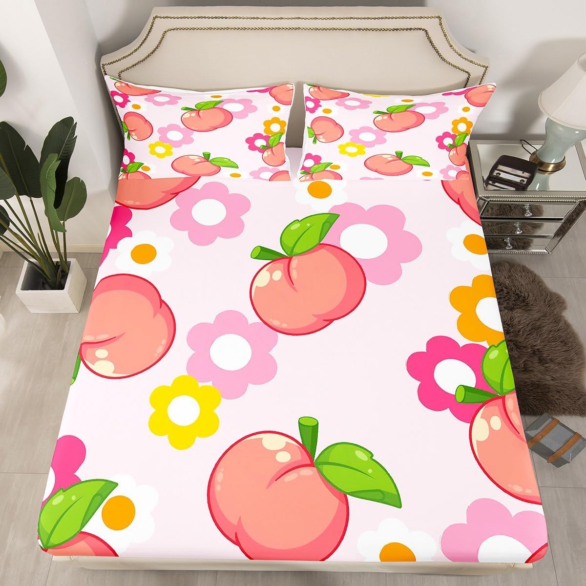 Our bed sheet is made of polyester fabric, lightweight and soft; stylish design is very suitable as room decoration for boys and girls; keep warm in winter and cool in summer; create a comfortable sleeping environment to make you fall asleep all night Range of size 1 twin fitted sheet 39 inch x 75 inch x 16 inch and 1 twin flat sheet 66 inch x 96 inch and 1 standard pillowcase 20 inch x 30 inch 1 full fitted sheet 54 inch x 75 inch x 16 inch and 1 full flat sheet 81 inch x 96 inch and 2 standard pillowcase 20 inch x 30 inch 1 queen fitted sheet 60 inch x 80 inch x 16 inch and 1 queen flat sheet 90 inch x 102 inch and 2 standard pillowcase 20 inch x 30 inch 1 king fitted sheet 78 inch x 80 inch x 16 inch and 1 king flat sheet 90 inch x 106 inch and 2 standard pillowcase 20 inch x 36 inch