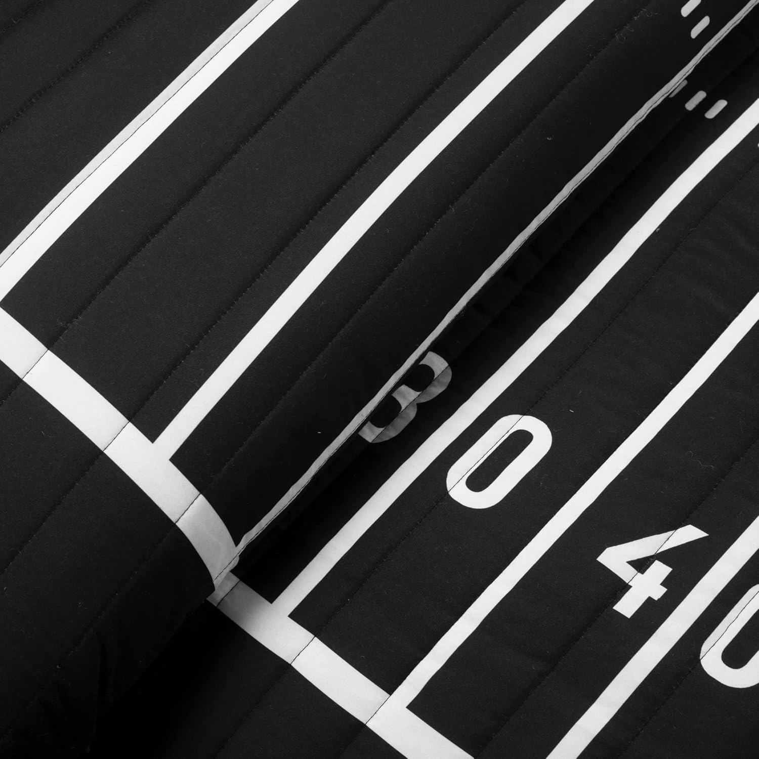 Decorate your football star's bedroom with this graphic quilt set so they can spend every cozy moment on their favorite field. Printed on an oversized canvas, this reversible bedding set is an ultimate sports fan's dream come true.