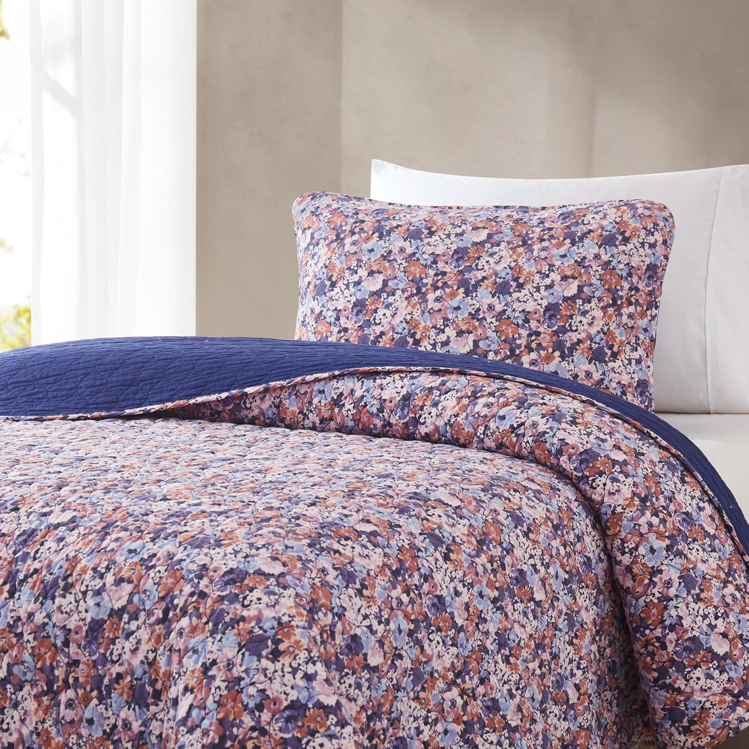 Camouflage yourself in dreamy florals with this adorable botanical quilt set. Designed with an organic pattern of blooming flowers in soft, muted hues for a nostalgic feel. This colorful quilt easily becomes the focal point of any kids bedroom or dorm. Crafted from 100% cotton with a lightweight cotton blend filling, it offers ultimate comfort. This 2 piece set includes 1 quilt and 1 sham. STANDARD 100 by OEKO-TEX® certified, all components have been tested and certified free from harmful substances. Machine washable.