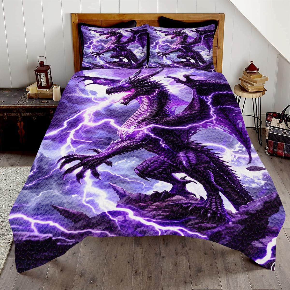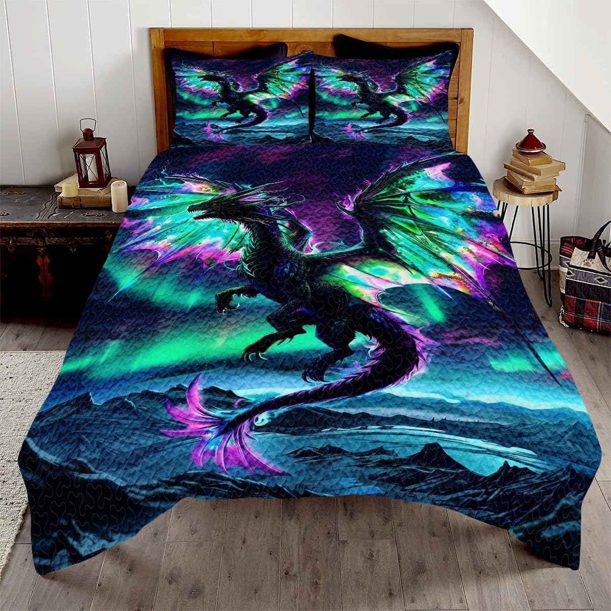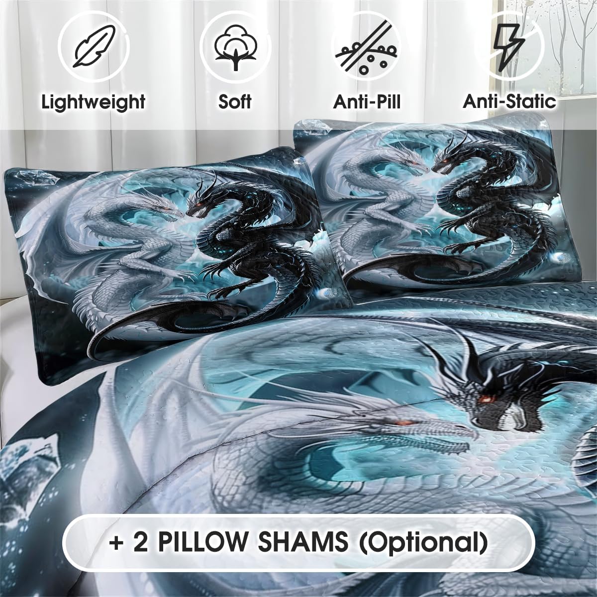 🐲 DESIGNED FOR DRAGON LOVERS: Unleash the magic of dragons in your bedroom! This ultra-soft, breathable quilt features a stunning design that’s perfect for fantasy enthusiasts – an unforgettable gift for any occasion! The ultra-detailed 3D print showcases a powerful dragon in stunning color and depth, making it the centerpiece of any fantasy-themed room. Whether you’re decorating a teen’s room, a gamer’s den, or just want a statement piece, this quilt brings heat and magic to your space. Available in five sizes—Throw, Twin, Full, Queen, and King—this quilt is made from a soft and breathable cotton-polyester blend. It’s lightweight enough for summer nights but cozy enough for cooler weather. The optional pillowcases complete the fantasy theme, giving your bedding an immersive look. Durable and machine washable, this quilt keeps its bold dragon design intact, even after repeated use. It's the ultimate gift for fantasy fans, dragon collectors, gamers, teens, and anyone who loves imaginative decor. Transform your bedroom into a legendary lair with the Dragon Quilt—where comfort meets creature power.