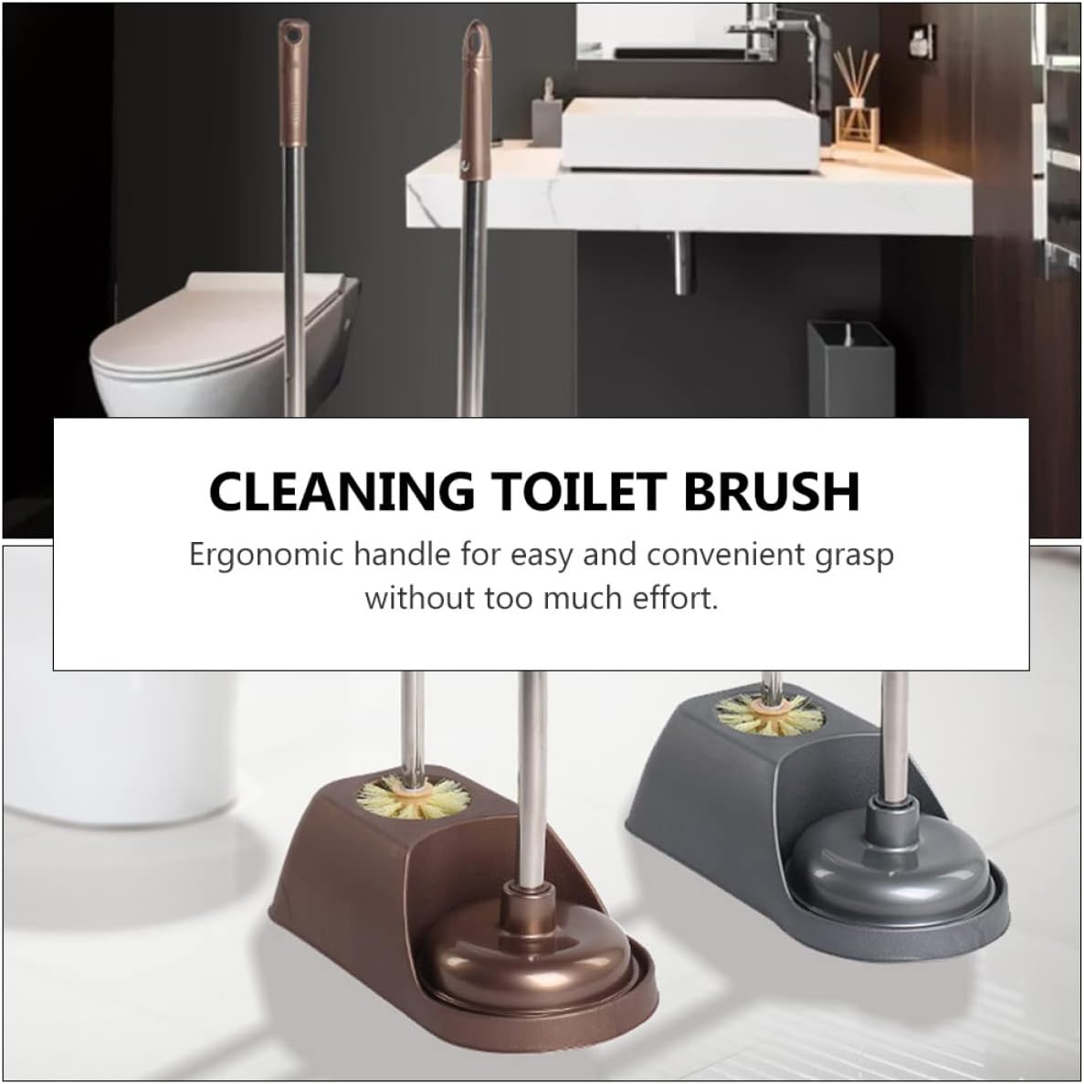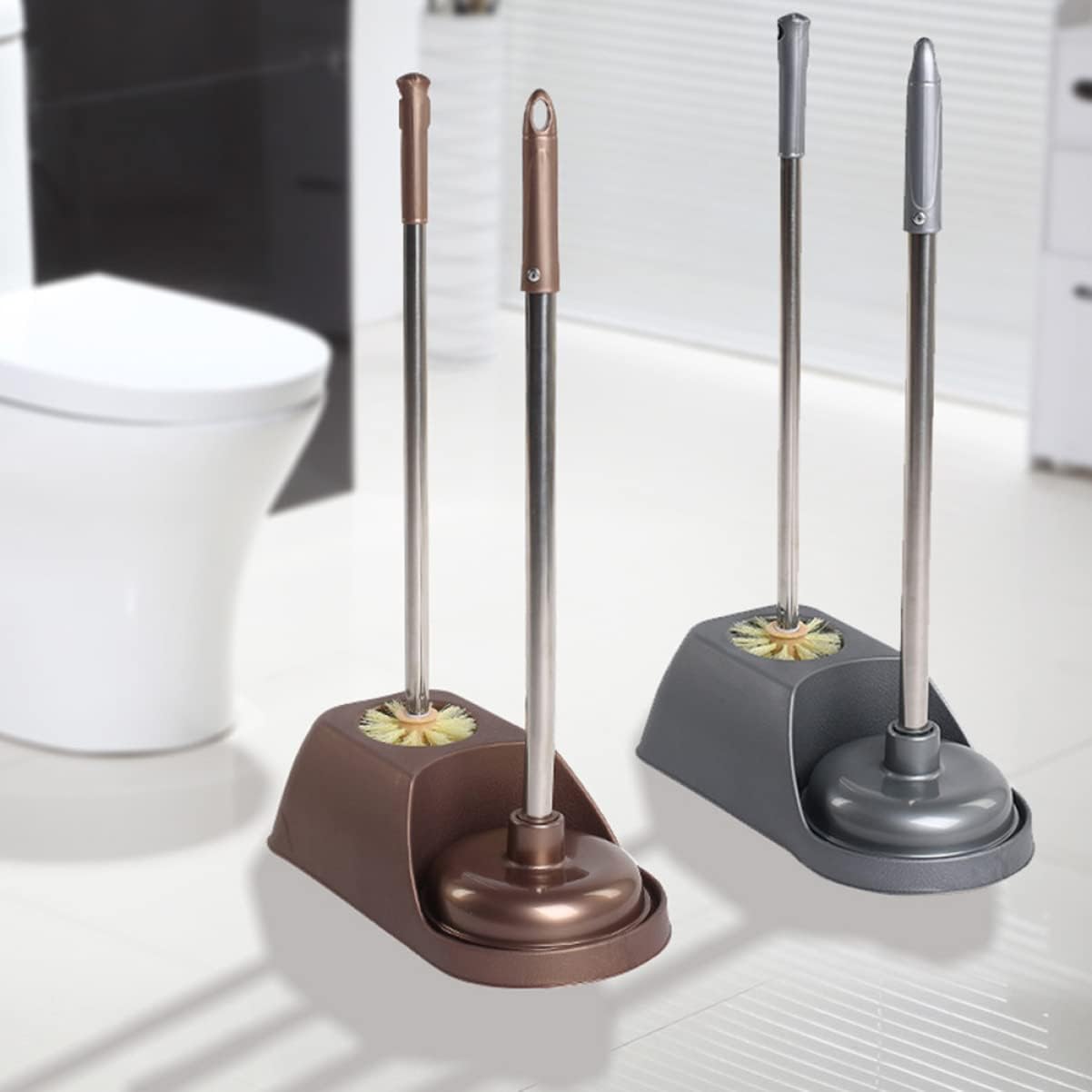 Package List1 x set of toilet cleaning toolFeatures- Non- slip handle allows you to use easier in your bathroom.- Material: PVC and stainless steel.- Perfect and favorable cleaning brush and toilet plunger for toilet, bathroom.- Size: 52.00X15.50X15.50cm/ 20.44X6.09X6.09inch.- Ergonomic handle for easy and convenient grasp without too much effort.- Color: Coffee.- Premium bristles for deep and effective cleaning. They are useful for cleaning the toilet.- set of toilet brush and toilet suction, cleaner and cleaner.Goods DescriptionAre you looking for a professional, affordable toilet plunger and a toilet brush? Are you in search of a sturdy, tool that can be used to do multiple at once? If yes, look no further! Our high- quality toilet cleaning tool set must meet your needs. one of the best choices for you.