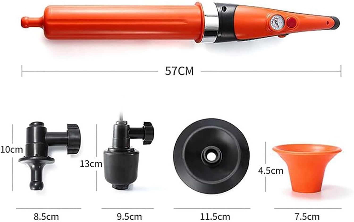Product DescriptionThe upward-facing air pressure indicator ensures easy visibility during electric pumping operations. Featuring a professional-grade gauge for precise pneumatic control, it displays high pressure levels in real-time, guaranteeing stable and durable performance for efficient unclogging.Specification:Name: Electric pipe dredging gunColor: orangeAir pressure: 1-10barMaterial: plastic, rubber, TPEPackage:Pipe dredge x1Accessories x6
