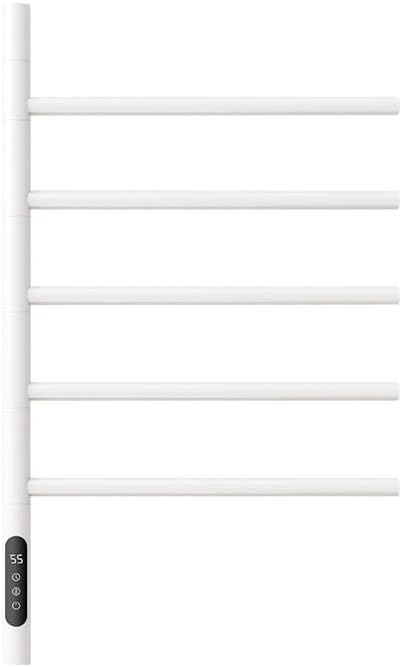 Transform your bathroom into a luxurious spa-like retreat with the KewinSent Electric Heated Towel Rack. This sophisticated 5-bar rotating design offers both style and functionality, keeping your towels warm, dry, and easily accessible. The sleek black finish adds a modern touch to any bathroom decor, while the versatile wall-mounted design saves valuable floor space. Experience ultimate convenience with WiFi and app control capabilities, allowing you to adjust settings remotely. The intuitive touch panel provides easy access to temperature controls and timer functions, letting you schedule warming periods to suit your routine. Installation is flexible with both hardwired and plug-in 110V options available, making it adaptable to your bathroom's setup. The rotating bars ensure maximum towel coverage and efficient heating, while providing easy access to multiple towels at once. Whether you're stepping out of the shower or planning your morning routine, this heated towel rack delivers the comfort of warm, ready-to-use towels whenever you need them.