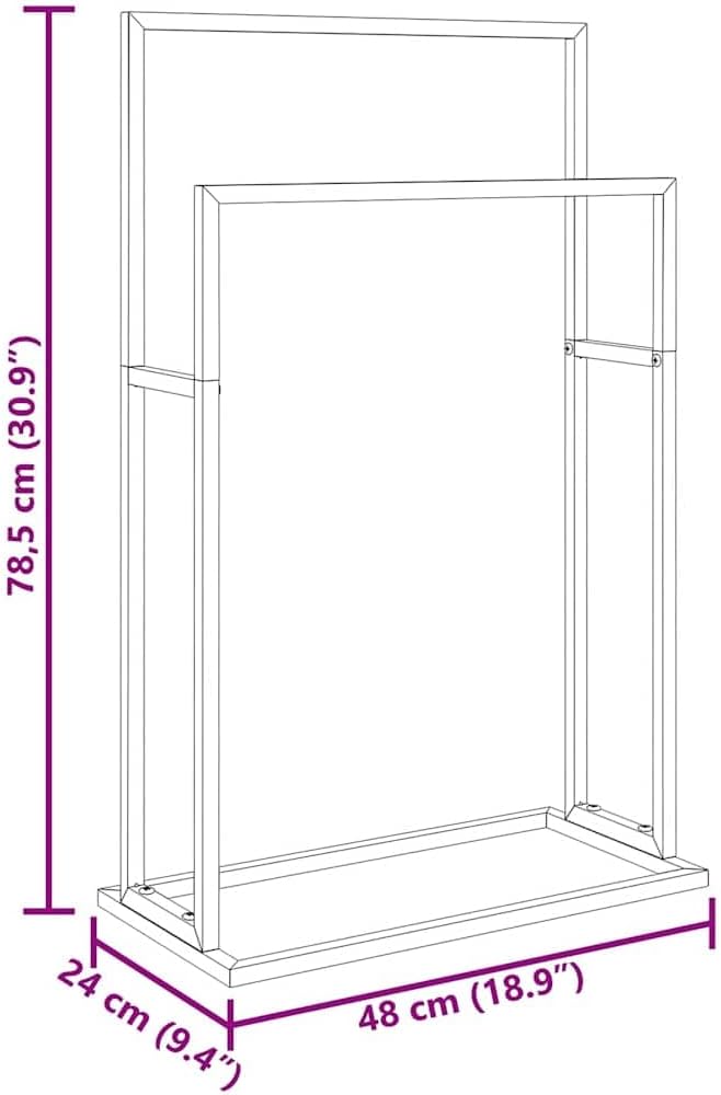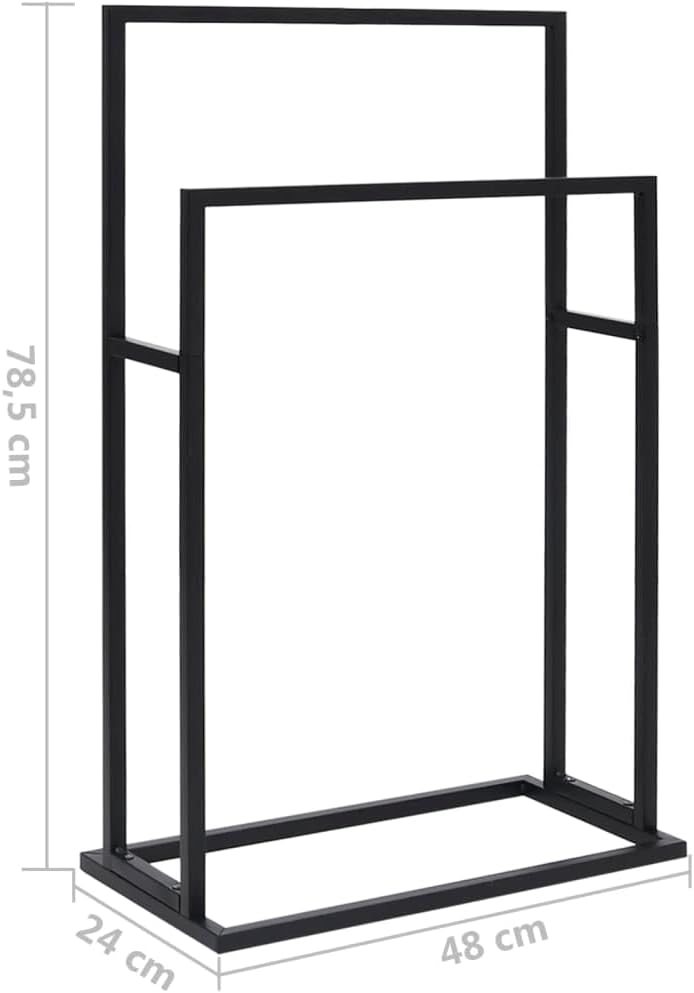 This towel rack makes a practical as well as decorative addition to your bathroom.The freestanding towel holder is made of sturdy iron which makes it stable and durable. The rack, featuring 2 tiers, provides ample space for hanging towels to help keep your bathroom clutter free. Additionally, it can also be used for drying towels, washcloths or rags.Color: BlackMaterial: IronDimensions: 18.9″ x 9.4″ x 30.9″ (W x D x H)Assembly required: Yes