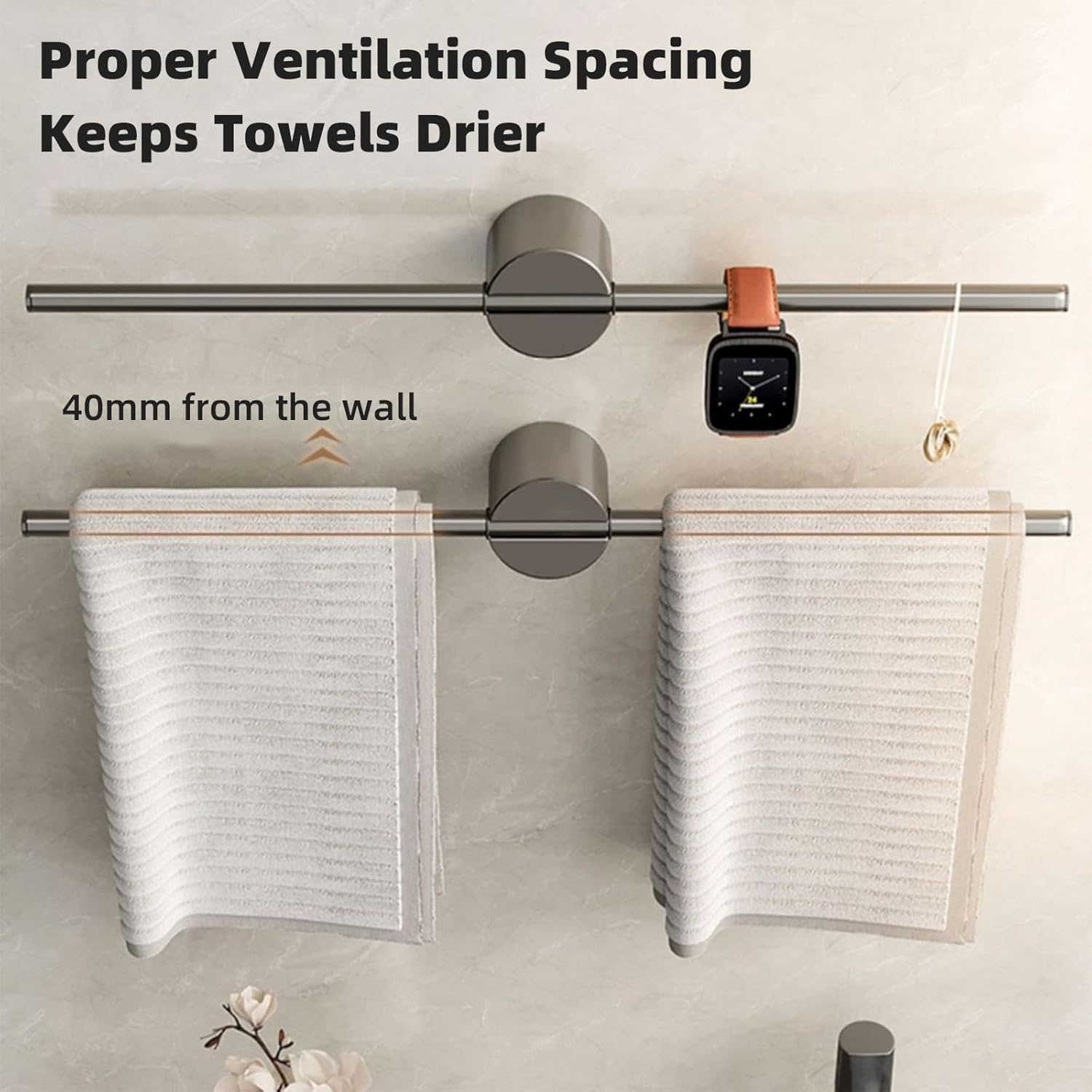 Tired of messy towels piling up on your bathroom counter? Looking for a durable, space-saving way to organize your towels and keep them dry? Our wall-mounted towel rack is the perfect solution!Designed with both functionality and style in mind, this towel holder is made of premium 304 stainless steel to stand up to bathroom conditions. The multi-bar design gives you enough space to hang all your towels at once, while the thoughtful spacing ensures quick drying.We know installation can be a hassle, so we offer two easy options: drill for a permanent hold, or stick with strong adhesive for a damage-free setup. Whether you’re a renter who can’t drill holes or a homeowner wanting a secure mount, this towel rack works for you.Beyond the bathroom, it’s a versatile organizer for your kitchen, laundry room, or even garage. Hang hand towels, oven mitts, cleaning cloths—whatever you need to keep within reach. The sleek, polished finish adds a touch of elegance to any space, making it both a practical tool and a stylish decor piece.