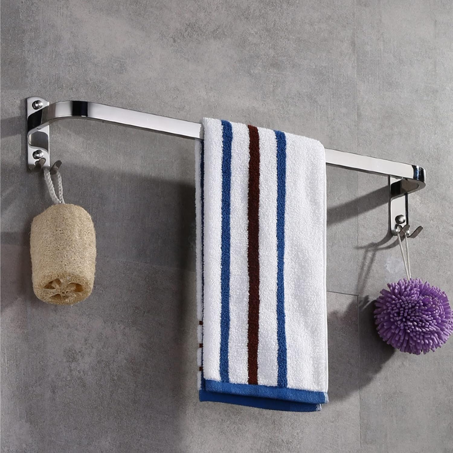 The Stainless steel towel rack is well hanging and organizing your face towel, bath towel and clothes in order in your bathroom ,balcony or kitchen.It is a simple, beautiful and practical towel rack hanger, which is made of durable stainless steel materials.With the included installation parts, you can easily install the towel rack on the wall to save space.It is suitable for various scenes such as bathrooms, bathrooms, kitchens, entrances, living rooms, bedrooms, etc. in family hotels.Easy to install and looks very modern and attractive in the bathroom. Can be used to hang towels, bathrobes and clothesnotes:1、Please do not install this product on fabric, wallpaper or other soft or uneven surfaces.2、If you have any questions, please feel free to contact our customer service.