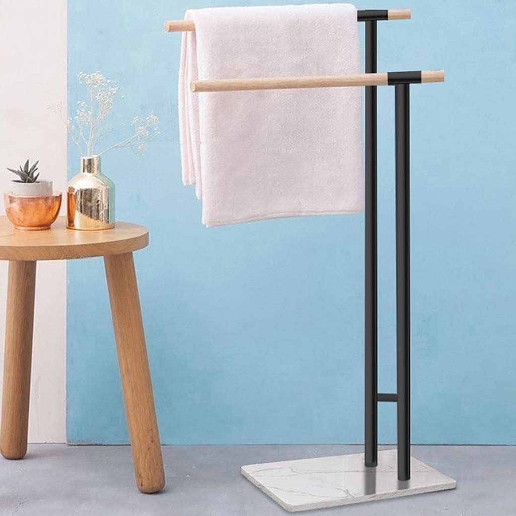 Towel holder for bathroom leaves enough space for damp towels to dry quickly instead of taking much space.Product Name: Towel Bar/Towel Rack / Towel Stand / Towel Holder / Towel Shelf / Towel Racks Material:Metal + solid wood + marbleStyle: modern Product features: strong bearing capacityWidely used in bathrooms, bedroom, closets and laundry, offices, wardrobes, kitchens, cabinetsPackage Included:1 X Towel Rack(excluding towels)Towel shelf offers plenty of room for storing extra towels.Safely hangs bath towel, pants and shirt, swimsuits, coats, bags, shower caddy or other stuff. Widely used: Towel holder suitable for bathrooms, kitchens, farmhouse, hotel, RVs, campers, boats and cabins, etc.
