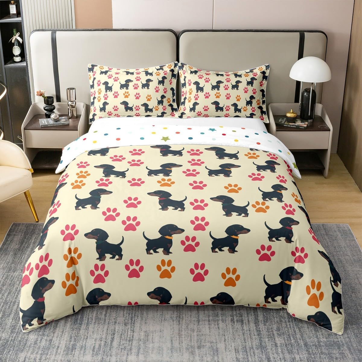 Package Include: Duvet Cover and Pillowcase, no comforter or sheet. Quality duvet cover set pattern bedding set, simply decorating your rooms any time you want, bringing you fresh feel for year round use . Material: Made from 100% Cotton. Size Information: Twin size 2pcs duvet cover set: 1 Duvet Cover 68" x 90" 173 x 229cm, 1 pillowcase 20" x 30" 51x75cm. Full size 3pcs duvet cover set: 1 Duvet Cover 80" x 90" 200 x 229cm, 2 pillowcase 20" x 30" 51 x 75cm. Queen size 3pcs duvet cover set: 1 Duvet Cover 90" x 90" 229 x 229cm, 2 pillowcase 20" x 30" 51 x 75cm. King size 3pcs duvet cover set: 1 Duvet Cover 104" x 90" 264 x 229cm, 2 pillowcase 20" x 36" 51 x 92cm. Personalize your bedroom: Beautiful design and colorful print, making your bedroom unique and bringing you a wonderful dream. Washing instructions: Machine wash separately in cold water, hang dry, do not bleach. Occasion: The cute soft duvet cover bedding sets designed for children, adults, men, women, teens. This duvet cover set is also suitable for all seasons, spring, summer, autumn and winter. Warm Tips: There may be some slight differences between the color tone of the pictures and that of the actual items due to lighting effects, monitor's brightness, etc.