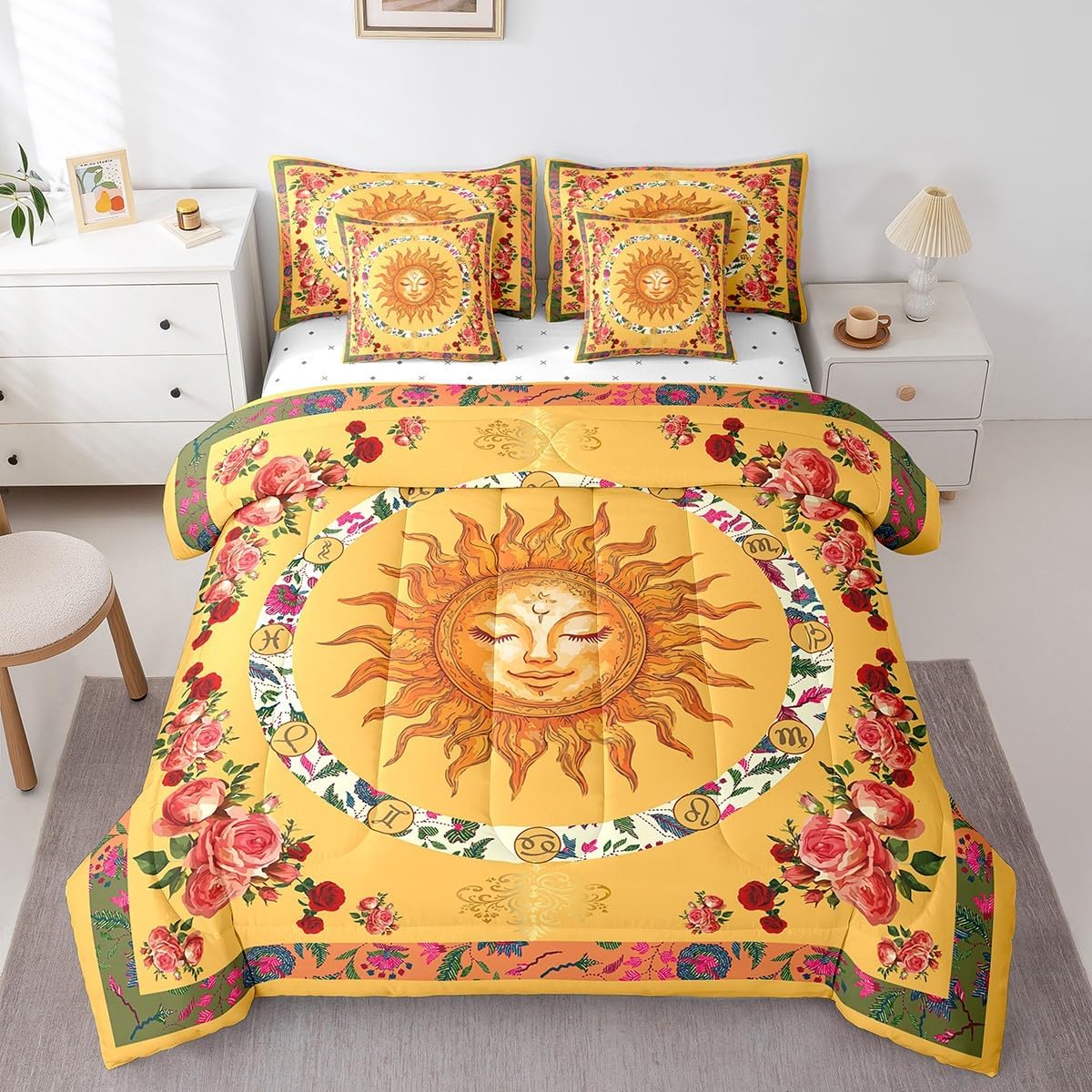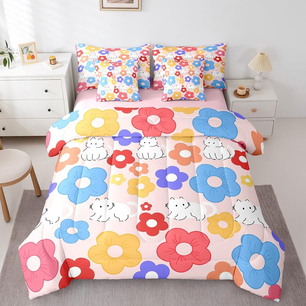 Why choose us Everyone has their own preferences; we develop different styles and different designs to suit the hobbies and aesthetics of different people; we look forward to bringing more joy and fun into your life; special design for special you; it's not just a simple home product, it's a way of life Brighten up your bedroom with this bed linen set; this bright and colourful bedding set features vibrant colours and special print pattern; turn the reversible duvet set over for a new look against a modern geometric background Convenient to use due to polyester which is super soft and comfortable; this all year round bedding is designed to be lightweight and breathable for a good night's sleep; a practical product for homes, dormitories, hotels, guest rooms Twin bedding set includes 1 twin comforter: 68"x90", 1 fitted sheet: 39"x75"x16", 1 flat sheet: 66"x96", 2 Pillowcases: 20"x30", 2 square pillow covers: 18"x18", perfect for a twin size bed. Full bedding set includes 1 full comforter: 79"x90", 1 fitted sheet: 54"x75"x16", 1 flat sheet: 81"x96", 2 Pillowcases: 20"x30", 2 square pillow covers: 18"x18", perfect for a full size bed. Queen bedding set includes 1 queen comforter: 90"x90", 1 fitted sheet: 60"x80"x16", 1 flat sheet: 90"x102", 2 Pillowcases: 20"x30", 2 square pillow covers: 18"x18", perfect for a queen size bed. King bedding set includes 1 king comforter: 104"x90", 1 fitted sheet: 78"x80"x16", 1 flat sheet: 90"x106", 2 Pillowcases: 20"x36", 2 square pillow covers: 18"x18", perfect for a king size bed. In addition to this comforter set with sheets, there are curtains, area rugs, shower curtains, blankets and other furniture with the same design waiting for you to explore. Whether it is for birthday of your family or friends, relatives, or just for yourself, the item should be interesting and authentic.