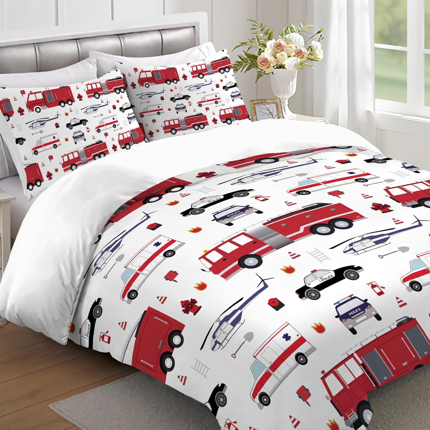 Pattern: Fire Truck Comforter Bedding Size:UT-66"x90"Size:UQ-90"x90" the quilt and pajamas are super soft and comfortable. The quilt is also very breathable and lightweight, allowing you to get a truly extraordinary sleep experience. Luxury products suitable for families, dormitories, hotels, guest rooms, do not use chemicals, do not use dye substances to endanger the health of you or your family [Material] The fabric is made of 100% microfiber. The filling of the quilt is 100% polyester. The extremely soft material keeps you warm and comfortable in all seasons. [Features] The quilt is fluffy and light. It does not put downward pressure on your body. This soft and breathable fabric is very suitable for a comfortable sleep. Notice: 1. Due to manual measurement, please allow an error of 1-3cm 2. Due to the display color limitation, the actual color may be slightly different from the color on the screen.