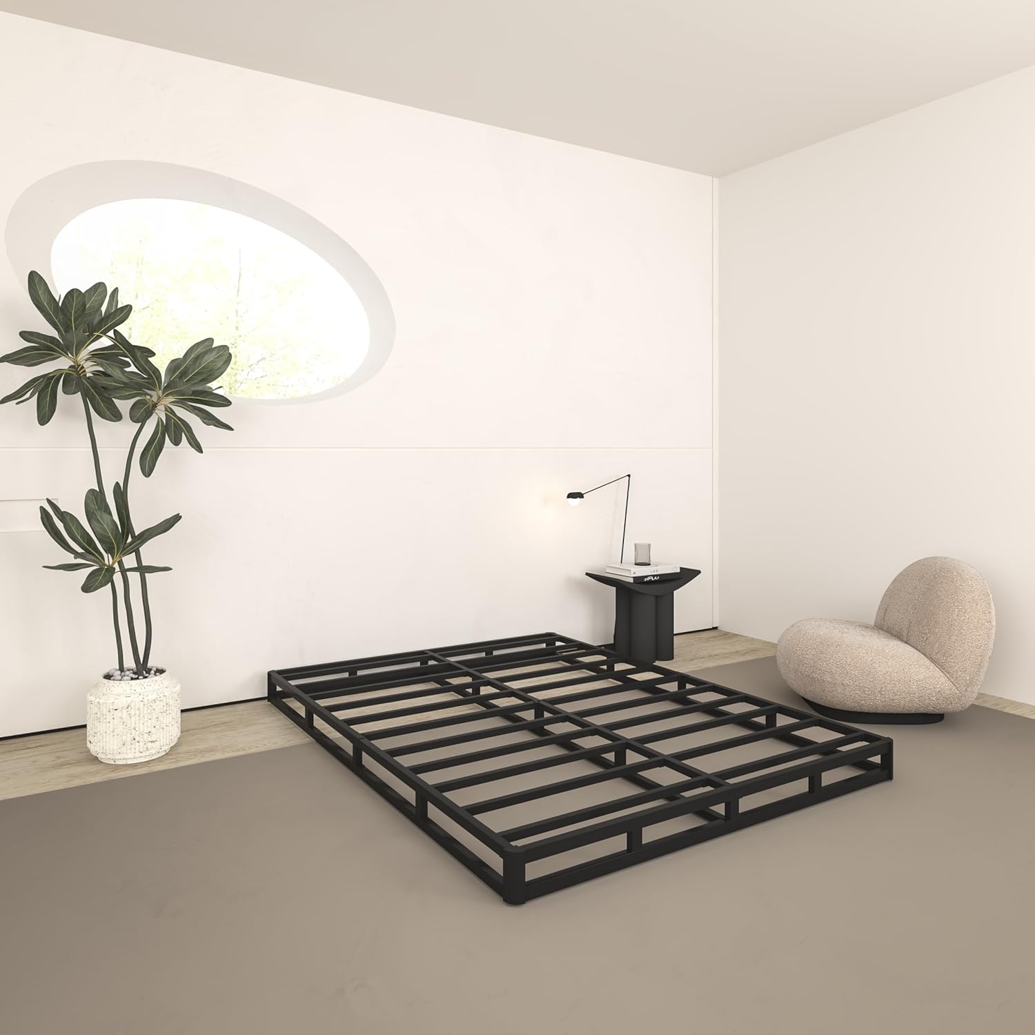 5 Inch Box Spring Queen Size, Heavy Duty Metal Queen Mattress Foundation, 3000 lbs Weight Capacity, Low Profile Noise-Free Bed Base with Fabric Cover, Easy Assembly, Black