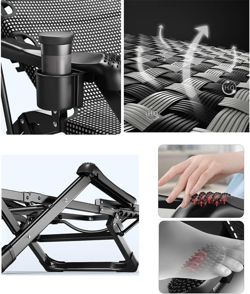 We providing you with the best indoor and outdoor comfort and convenience. Zero-gravity Lounge Chair Recliners provides a stress-free weightless feel for optimal relaxation!Product Name:Reclining Patio ChairsFolded size: 66*97*25cmFrame Material: Alloy Steel Age Range: Adult Item Weight: 8kgMaximum Weight Recommendation: 200kg Style: ModernUses: \u200eLounge, Outdoor, beach, park, Yard, Patio, Pool or campsiteFeature: GravityPortable foldableHeadrest Cup holderMassage armrestsFoot massageRelaxation and comfortableThicker steel tubeBreathable fabricHeavy dutySpace savingNotice:1. There may be slight color difference due to different monitors and light2. Due to manual measurement, please allow 2-3mm error3. The item you receive is subject to the main imageSales Servic:If you have any questions after receiving the package, please feel free to contact us, we will provide you with satisfactory service within 24 hours!