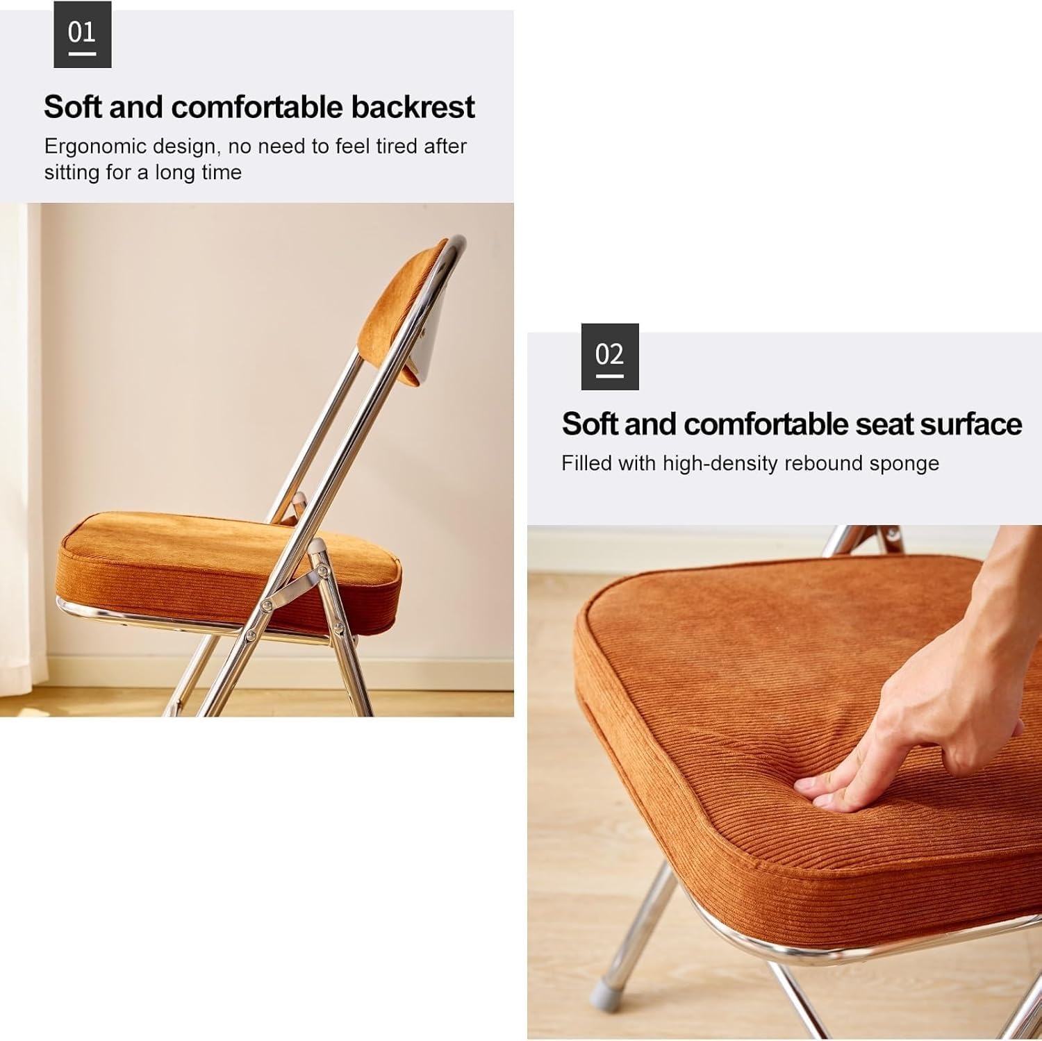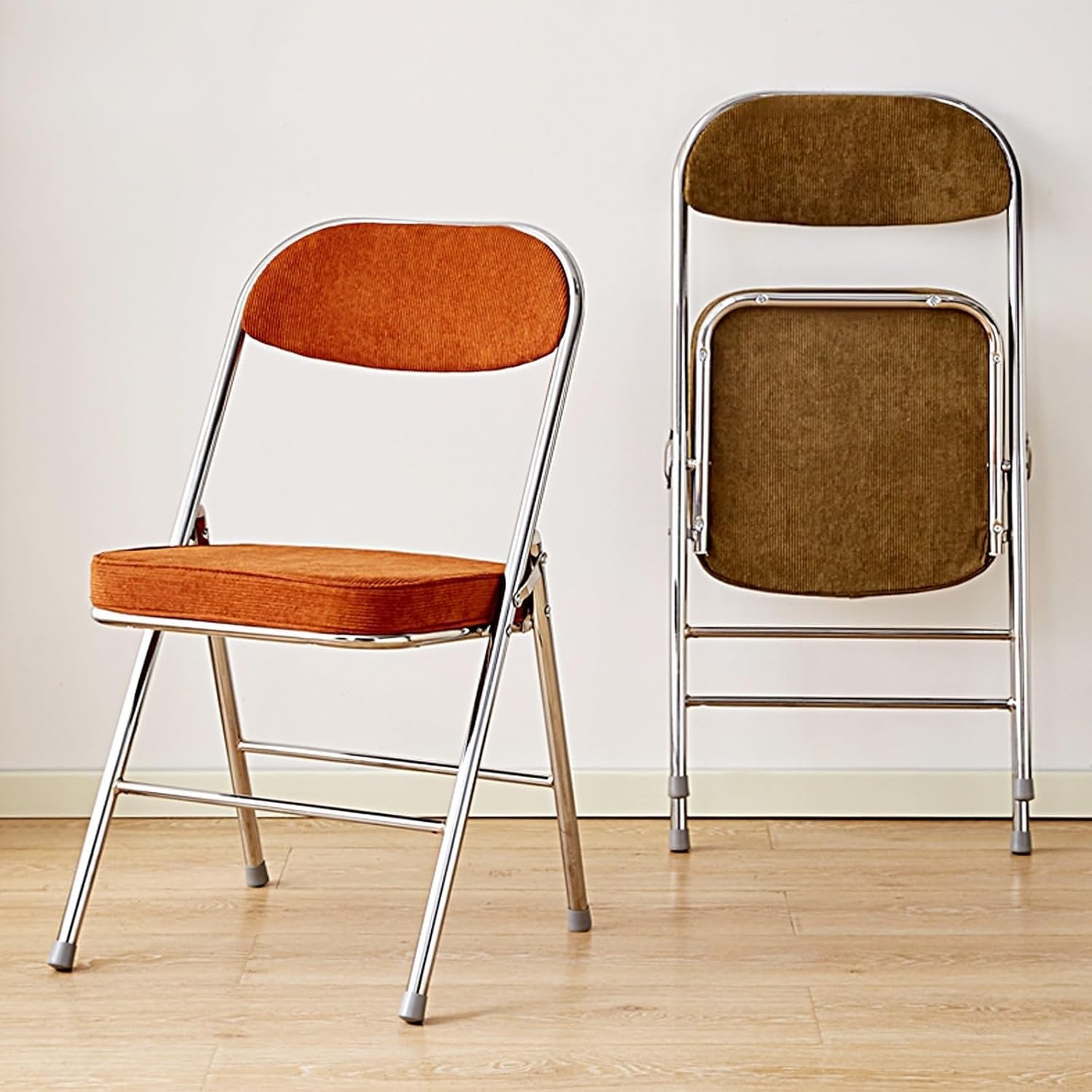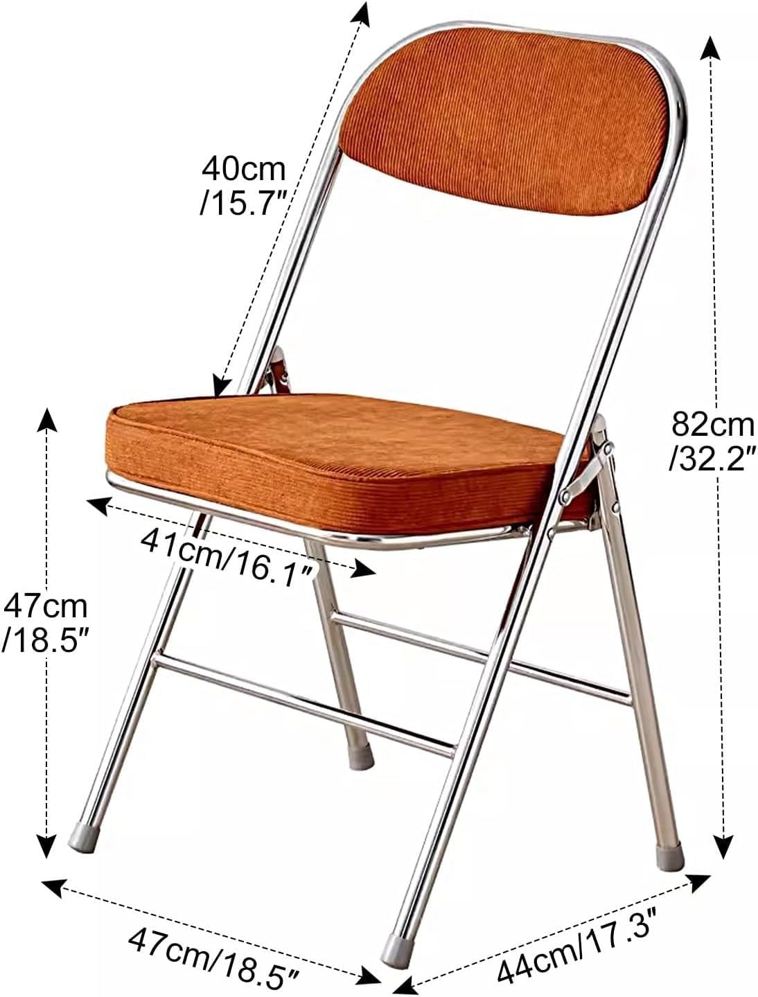 Folding chairPursue leisure time and enjoy comfortable space1. Improve utilization rateAfter folding and storing, it does not take up space and can be opened directly for use2. Soft and comfortable backrestErgonomic design, soft and comfortable backrest, no fatigue when sitting for a long time3. Soft and comfortable seatThe seat is filled with high-density rebound sponge, and the sitting feeling is soft and comfortable4. Triangular mechanics designTriangular mechanics principle, reinforced connection, strong and stable, durable5. Aluminum alloy chair legsThe whole is strong and durable, anti-corrosion and rust-proof, durable6. Anti-slip and silent foot coverPrevent product shaking, reduce noise when moving, and protect the floor7. Excellent load-bearing capacityReal materials, strong and stable, measured load-bearing capacity of 200kgColor: Brown , Blue , Camel , Orange , PinkSize: L,47*W,44*H,82cmMaterial: Corduroy fabric + aluminum alloy chair legsWeight: 4.55kgStyle: Simple and modernPacking list: 1PCSApplicable scenarios: living room, dining room, bedroom, large outdoor activities, weddings, etc.