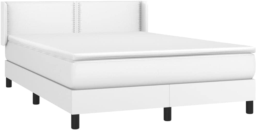 Use this box spring bed to enjoy a restful night's sleep! It offers you maximum relaxation and pleasant sleep. Durable faux leather: Premium faux leather is a highly durable material. It is resistant to stain, making it easy to clean with a damp cloth. The smooth surface also gives a luxurious look and the beauty of leather. Medium-hard support: The bed mattress perfectly provides added stability and just the right level of firmness without sacrificing comfort. So, it is ideal Compatible with back or stomach sleepers. Note: Compatible with hygiene reasons, the mattress cannot be returned if the packaging is removed or opened. Each product comes with an assembly manual in the box Compatible with easy assembly. Bed: Color: White Material: Faux leather (75% polyvinylchloride, 5% cotton, 20% polyester), solid larch wood, plywood, engineered wood Dimensions: 76" x 57.9" x 30.7"/34.6" (L x W x H) Bed mattress: Color: White Material: Faux leather (75% polyvinylchloride, 5% cotton, 20% polyester) Filling material: Pocket springs, foam Dimensions: 53.9" x 74.8" x 7.9" (W x L x H) (Full) Bed mattress topper: Color: White Topper material: Fabric (100% polyester) Filling material: Foam Dimensions: 53.9" x 74.8" x 2" (W x L x H) Delivery contains: 1 x Bed frame 1 x Headboard with ears 1 x Mattress 1 x Mattress topper