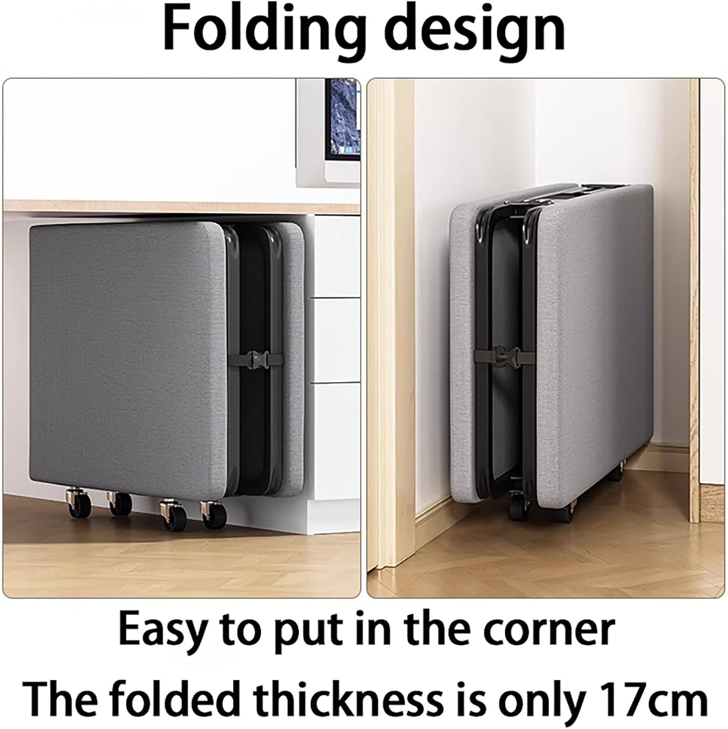 Features:- Our folding bed frame utilizes heavy-duty powder-coated steel, ensuring maximum sturdiness and extra durability.- The good elasticity provides a comfortable lying experience.Specifications:Product name: Sofa bed/Folding bed/Single bed/Camp bedMaterial: Steel, High Elastic Sponge, LinenNet Weight: 18KGWeight Capacity: 200KGApplicable scene: Living room, Bedroom, Office, Study room, and more placesPackage Includes:1 × Bed Frame1 × Mattress1 × Instruction- This sofa bed can be easily unfolded with a simple pull and then rolled away to finish assembly in seconds.- Due to the manual measurement of the size, there may be an error of 1 to 3 cm. Please refer to the actual product. Thank you for your understanding.