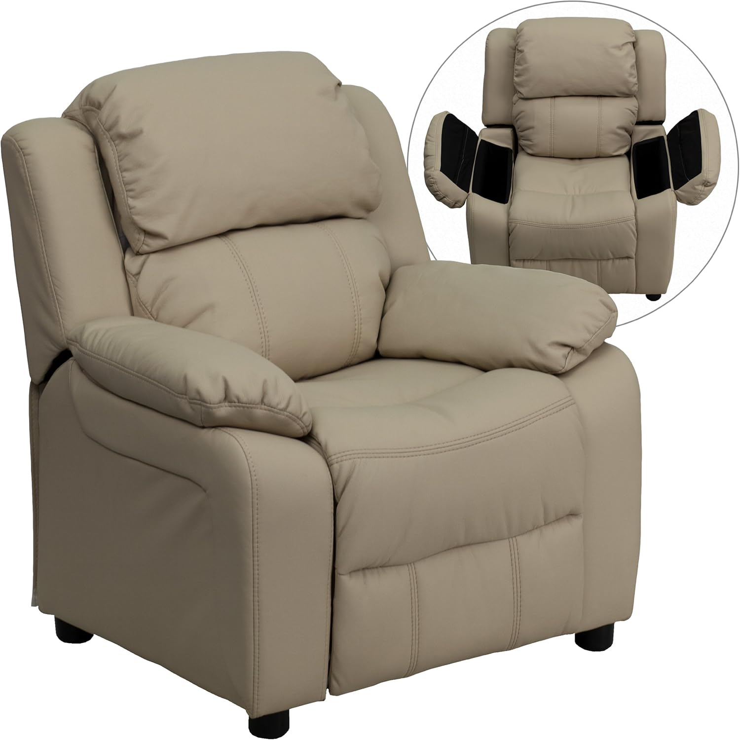 Comfortable seating is a must for all ages and your little ones will enjoy having a "grown up" chair all their own. This generously padded recliner chair for kids is a perfect spot for kids to watch TV, draw on a light-up tracing pad, fine tune their motor skills playing video games or quietly read their favorite book. This kids recliner features a built-in cup holder to help prevent spills and free up busy hands. Is your little munchkin of the four-legged variety? This recliner is the ideal spot for them to curl up with their favorite toy and chew sticks or dog bicuits can be held in the cup-holder to reward good behavior. Safety means everything when it comes to those most important to you. This sturdy kids recliner has a solid hardwood frame that holds up to 90 lbs static weight capacity and only reclines when a child is seated and the footrest is pulled out 1". Soft foam padding, raised plastic feet and durable microfiber upholstery round out the all-star roster of this reclining kids chair. Just as night follows day, spills and stains are inevitable when there are kids and pets in the home. Quickly and easily spot clean the upholstery with water and a neutral detergent to keep this push back recliner looking great. This cozy recliner for kids will be a great addition to your living room, child's bedroom or playroom.