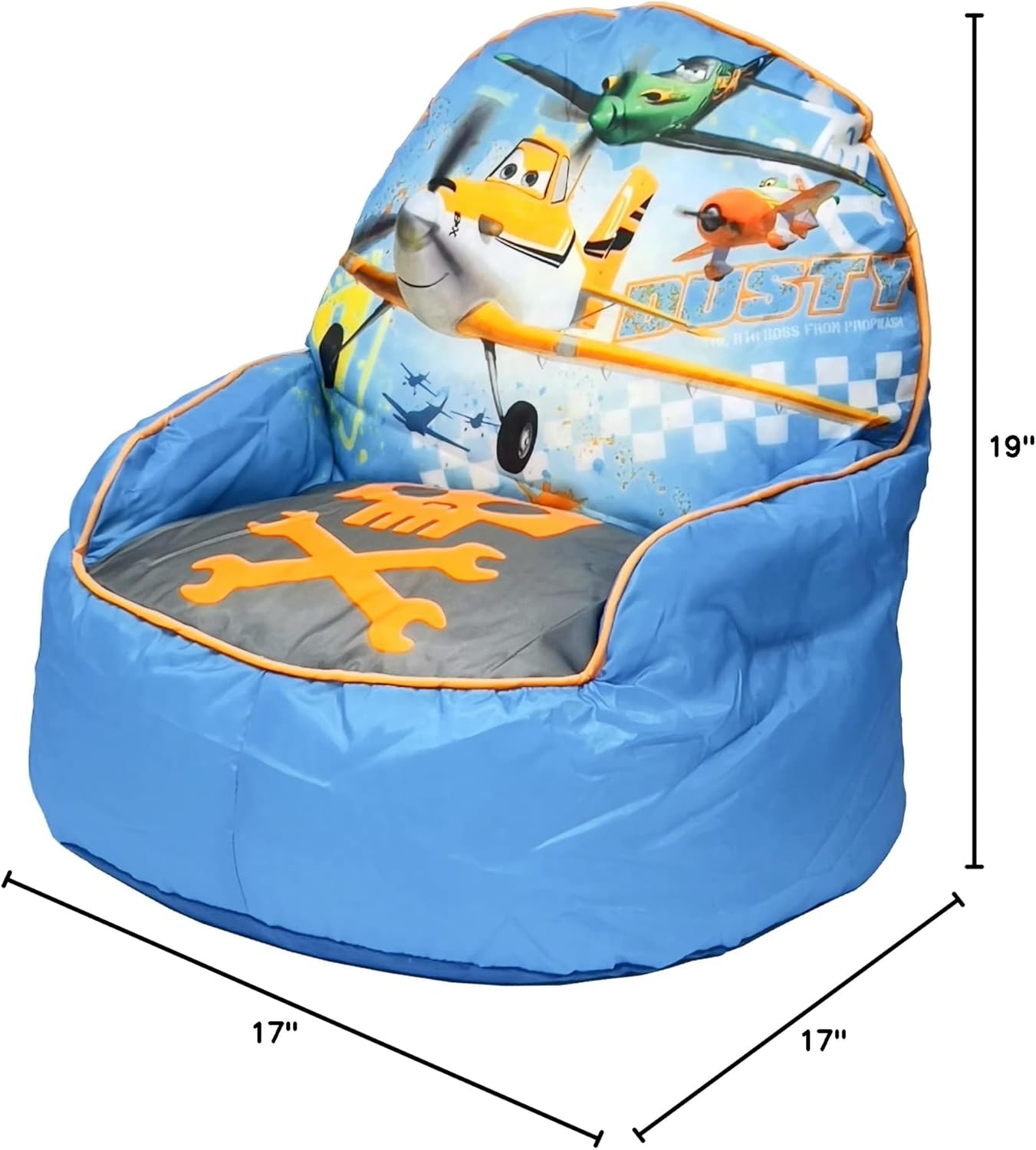 Add some fun and color to a room with the Disney Planes decorative bean bag Chair sized just right for the little ones, it will steal the attention at the next playdate. Your child will enjoy hanging out with friends while sitting on the chair. The fun and functional portable chair is incredibly durable and easy to maintain. The Disney Planes bean bag chair can look great in any room and it's lightweight and easy to move around. It's made from polyester and can be spot cleaned making it 100 percent mom-approved!