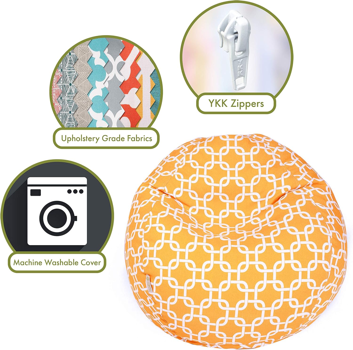 Relax yourself in the Majestic Home Goods bean bag chair! The portable design of this giant bean bag chair allows you to easily bring it to any room, whether you're watching a movie in the living room or reading a book in the bedroom. Removable slipcover and it’s easy to clean fabric makes this beanbag a great fit in kids’ rooms, dorm rooms, basements, bedrooms and more! As with all Majestic Home Goods bean bag chairs, it is manufactured with the highest quality of cotton and polyester to ensure it lasts for a long time. The bean inserts are made from 50% recycled polystyrene so we do our part in protecting the environment and, at the same time, providing you with maximum comfort from our special prostyrene beads. Majestic Home Goods designs and assembles all of their bean bag chairs in the USA. Highest quality bean bags are guaranteed! Specifications Dimensions: 28 x 28 x 24 Inches Item Weight: 7 pounds Insert Material: Recycled polystyrene beads Slipcover material: Polyester cotton