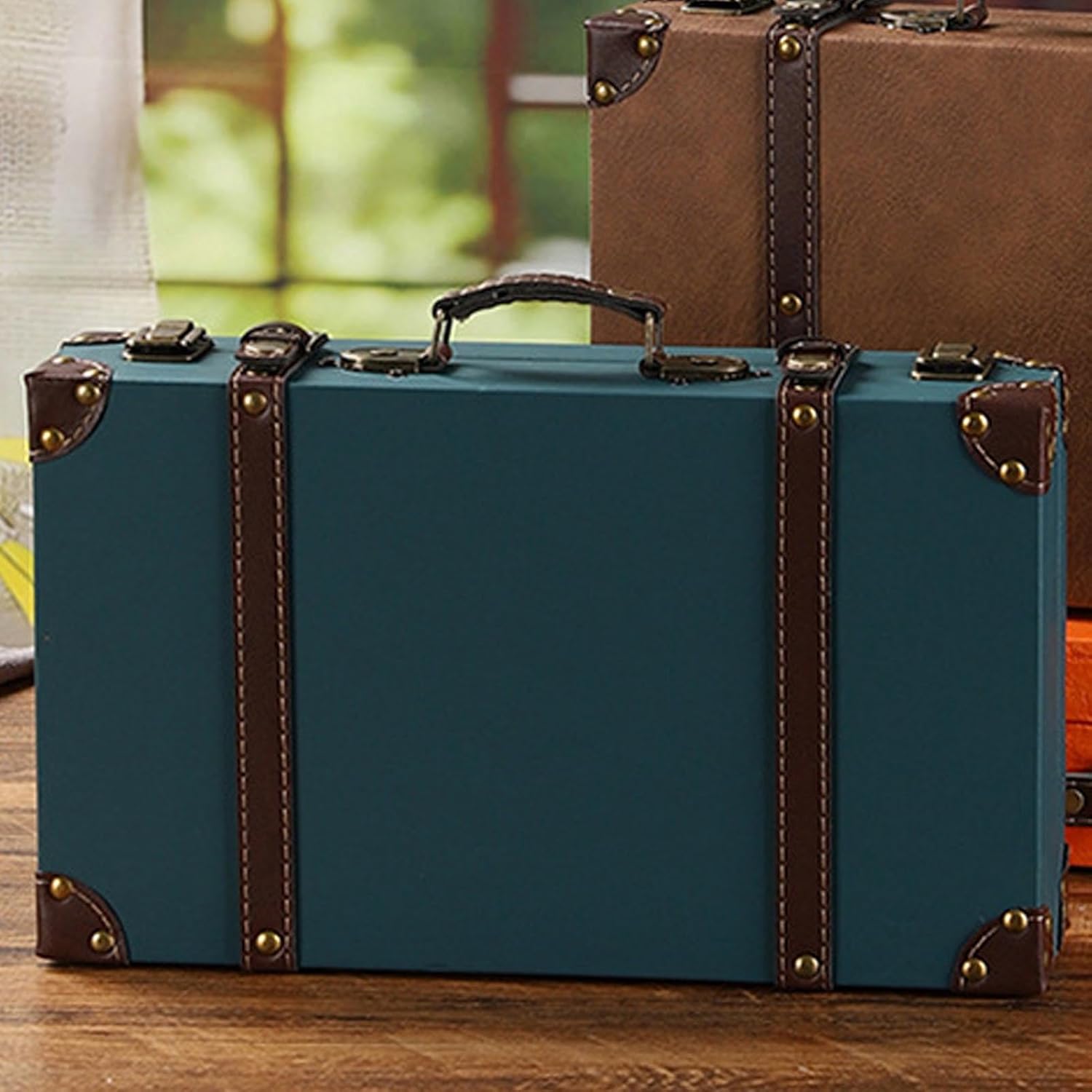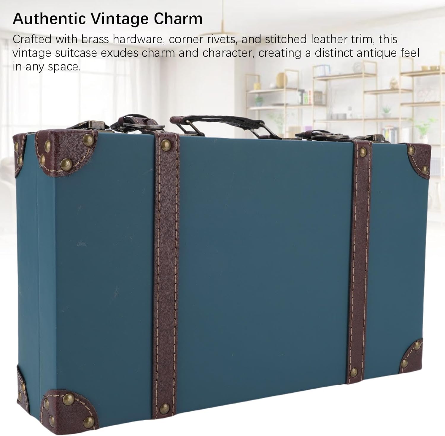 Product Description:The Vintage Suitcase combines antique aesthetics with modern functionality, making it a versatile accent piece for any room. Crafted from composite wood with brass hardware, corner rivets, and stitched PU leather trim, this wooden storage trunk offers both charm and practicality. The flat-bottom design ensures stability, while its lightweight body and side handle allow for easy placement and portability. Whether displayed in a living room, study, or hallway, this vintage suitcase serves as an elegant organizer for keepsakes, accessories, or decorative displays that elevate your home décor.Specifications:Item Type: Vintage SuitcaseMaterial: Composite Wood, PU LeatherWeight: Approx. 1390g / 49ozProduct Size: Approx. 34x9x20.5cm / 13.4x3.5x8.1inPackage List:1 x Vintage Suitcase