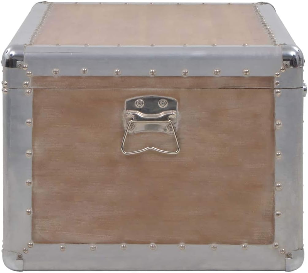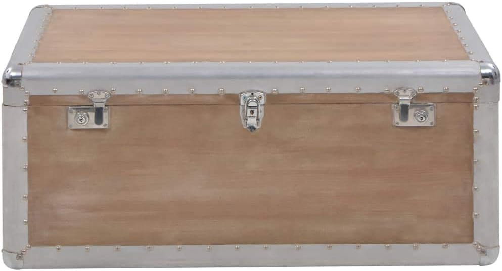 This classic wooden storage box will make a decorative addition to your rooms. It can also be used as a coffee table in your living room.This highly stable and durable storage chest was crafted from solid fir wood and also exudes vintage charm and gives its rustic characteristics. The sturdy top is ideal for placing fruit baskets, vases or some other decorative items. The box has ample space for keeping your various items neatly organized and within reach. The storage chest is designed with two portable handles to be easily moved around the house.This storage box is easy to assemble.Color: BrownMaterial: Solid fir wood + MDF + non-woven fabric + steelDimensions: 35.8" x 20.5" x 15.7" (W x D x H)Polished and paintedWith ample storage space
