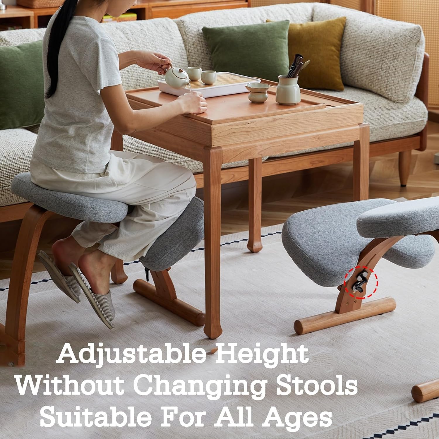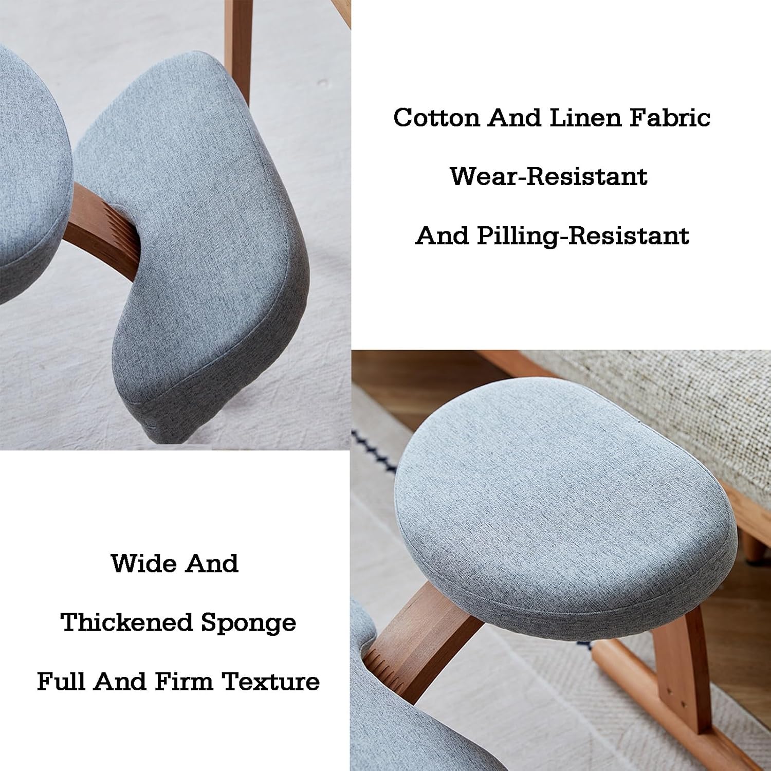 Its innovative rocking mechanism helps you easily maintain the natural curve of your spine, correct incorrect sitting posture, and significantly relieve back discomfort caused by prolonged sitting.Ergonomic that shifts your weight forward, relieving pressure and nurturing an upright posture. Safeguarding your spine and vision long sessionsFeatures:1. Dynamic rocking function effectively relieves neck and back discomfort after work2. kneeling chair can help correct incorrect sitting posture3. The rocking base provides improved balance and safeguards against rolloverSpecifications:Product Name: Kneeling Chair/Ergonomic Kneeling Chair/Posture Chair/Kneeling Desk ChairColor: As shownSize: 64x42x54cmMade of: wood, Sponge,Cotton and linenSeat cushion filling: High-density foamWeight Capacity: 220 lbsApplicable height: 140-170cmSuitable for: home, office, classroom, or anywherePackage Includes:1 x Kneeling Chair1 x User GuideNote:1. Due to manual measurement, please allow 1-2cm deviation in dimensions2.The reason of computer resolution, there may be differences in color to the actual goods received, prevail