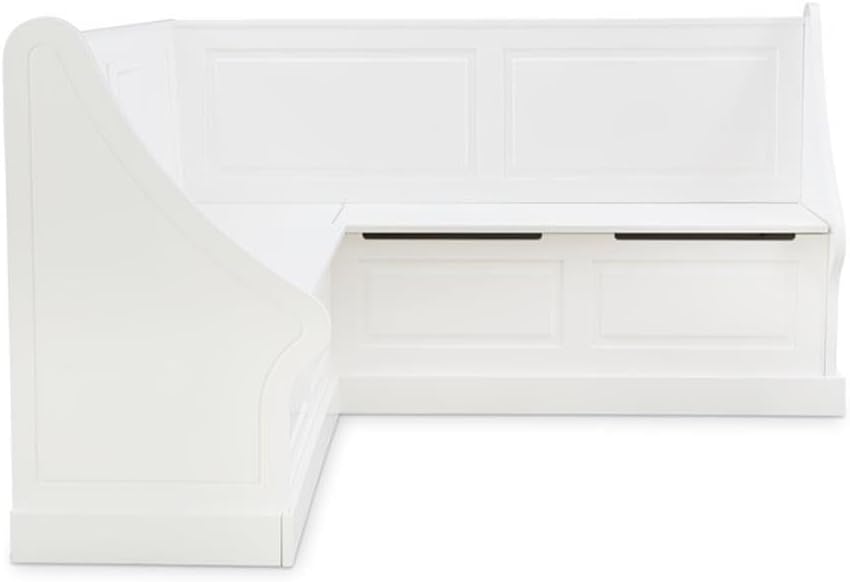 Transform your breakfast routine with the Riverbay Furniture Wood Corner Breakfast Nook in White. This nook set redefines mealtime comfort and style with its innovative design. The pristine white finish brightens up your space, creating an inviting ambiance. The corner configuration optimizes seating, making it an ideal solution for small spaces. Whether savoring a morning coffee or enjoying family dinners, this corner breakfast nook offers a cozy retreat for shared moments and delightful conversations.Features:- Crafted from Pine and MDF- White Finish- Bench seats open to reveal hidden storage- Smooth, rounded corners are kid friendly- Soft close hinges avoid slammingSpecifications:- Assembly Required: Some Assembly Required- Product Dimensions: 62"w x 16.5"d x 37.38"h- Product Weight: 169.77 lbs- Seat Height: 16.7"- Seat Dimensions: 61.5’’ W x 18.1’’ D- Weight Capacity: 500 lbs