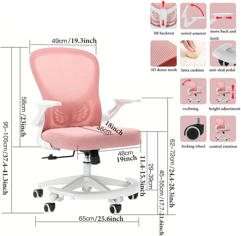 The cushion of office chair, let your body and mesh chair perfect fit, suit long time use, and breathable mesh backrest give you creative design!It is a good choice to add one of our computer chair in your office or put a desk chair in your home/activity room.【Product specification】--Color: Black , Blue , Gray , Pink--Product material: Nylon+3D dense mesh--Product size: Seat cushion size: 48*46 cm/19*18 inchHeight adjustment range: 45-55 cm/17.7-21.6inch--Maximum load: 150kg/330lbs--Package Contents:1 x kids desk chair【Tips】:★ We only sell kids desk chair, other items are props.★ All data is measured by hand with a slight error.★ Due to physical factors such as light, camera color and lighting, there may be subtle color differences.