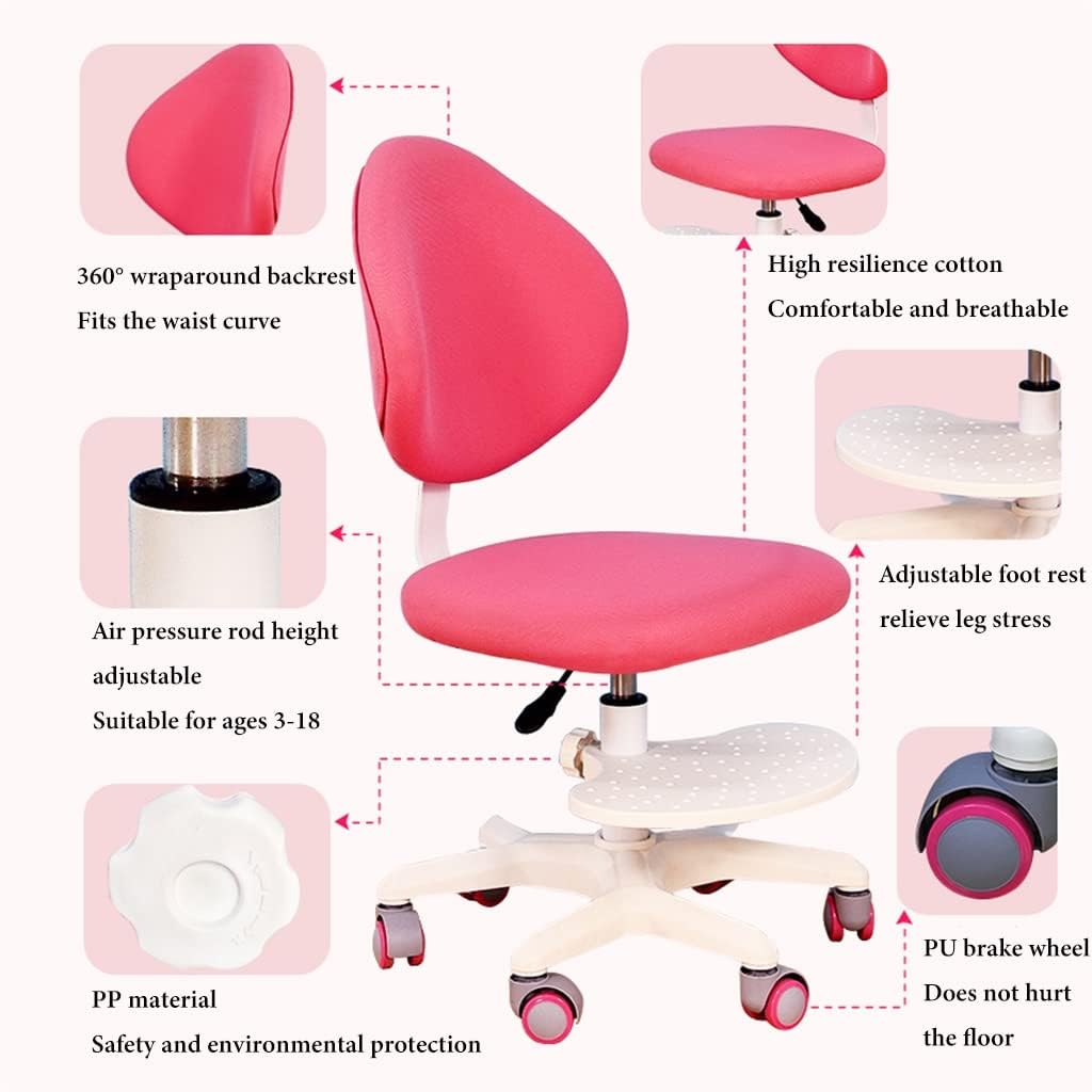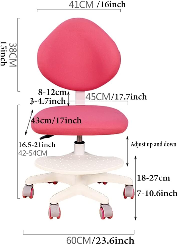 This ergonomic chair is height adjustable. Kids spend a lot of time sitting every day, so it is especially important to have a comfortable chair that helps kids sit in a healthy posture.Designed for age groups3-15+ years.Position adjustment helps children be at the appropriate height when seated.【Product specification】--Color: Blue , Pink--Product material: PP+high-density rebound sponge--Product size: A:Seat cushion size: 45*43 cm/17.7*17 inchHeight Adjustment: 18-27 cm/7-10.6 inchB:Seat cushion size: 43*36 cm/17*14 inchHeight adjustment: 14-18.5 cm/36-47 inch--Package Contents:1 x kids desk chair【Tips】:★ We only sell kids desk chair, other items are props.★ All data is measured by hand with a slight error.★ Due to physical factors such as light, camera color and lighting, there may be subtle color differences.