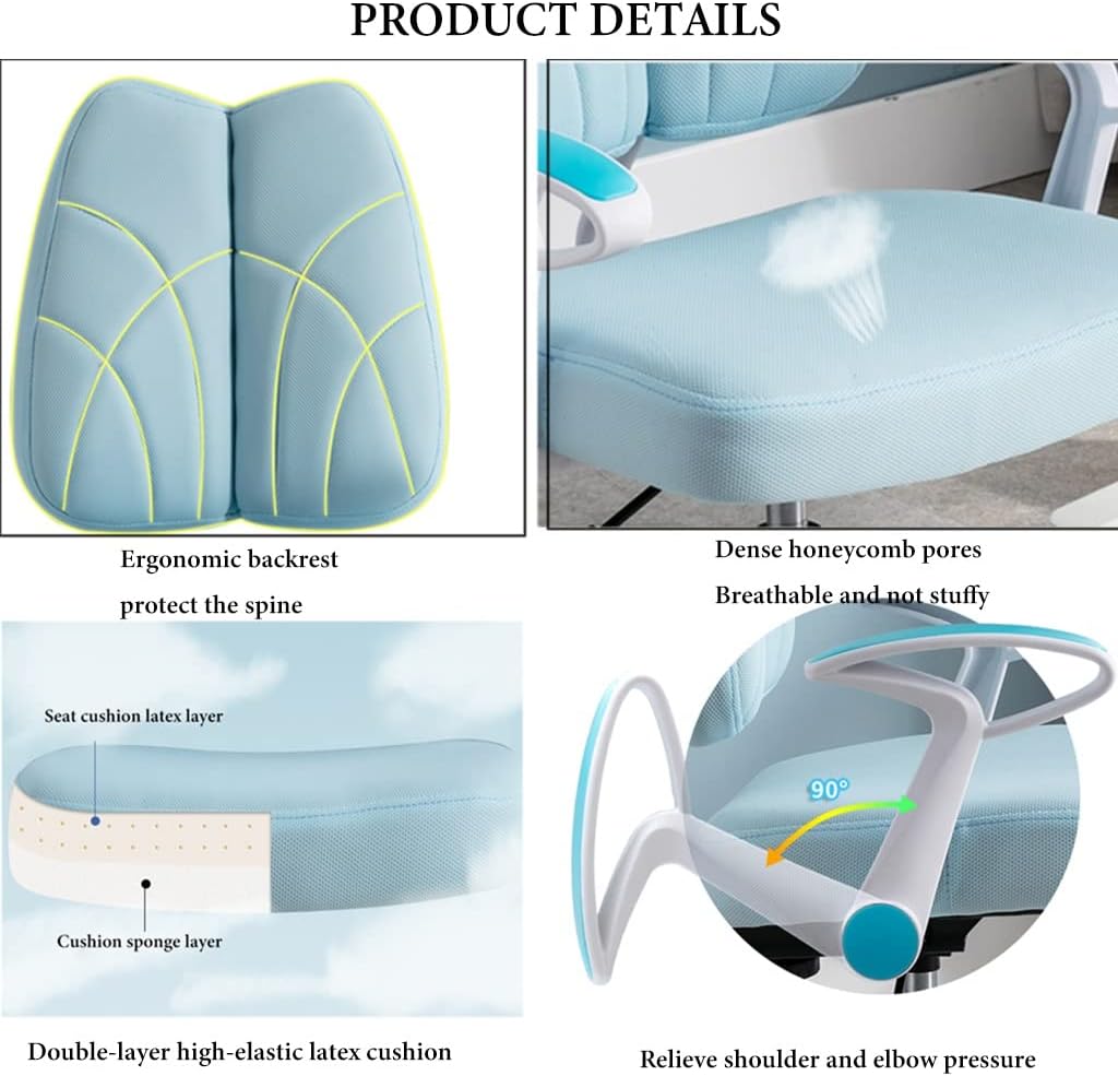 USE IN MULTIPLE SCENARIOS: No matter where you put it, the unique bright color kids computer chair will bring more vitality to the room. This kids desk chair will be great in the dorm, study, child's room.Suitable for children aged 3-18【Product specification】--Color: Blue , Pink--Product material: Nylon feet+latex cushion--Product size: Backrest height adjustment: range:43-45 cm/16.9-17.7 inch--Package Contents:1 x kids desk chair【Tips】:★ We only sell kids desk chair, other items are props.★ All data is measured by hand with a slight error.★ Due to physical factors such as light, camera color and lighting, there may be subtle color differences.