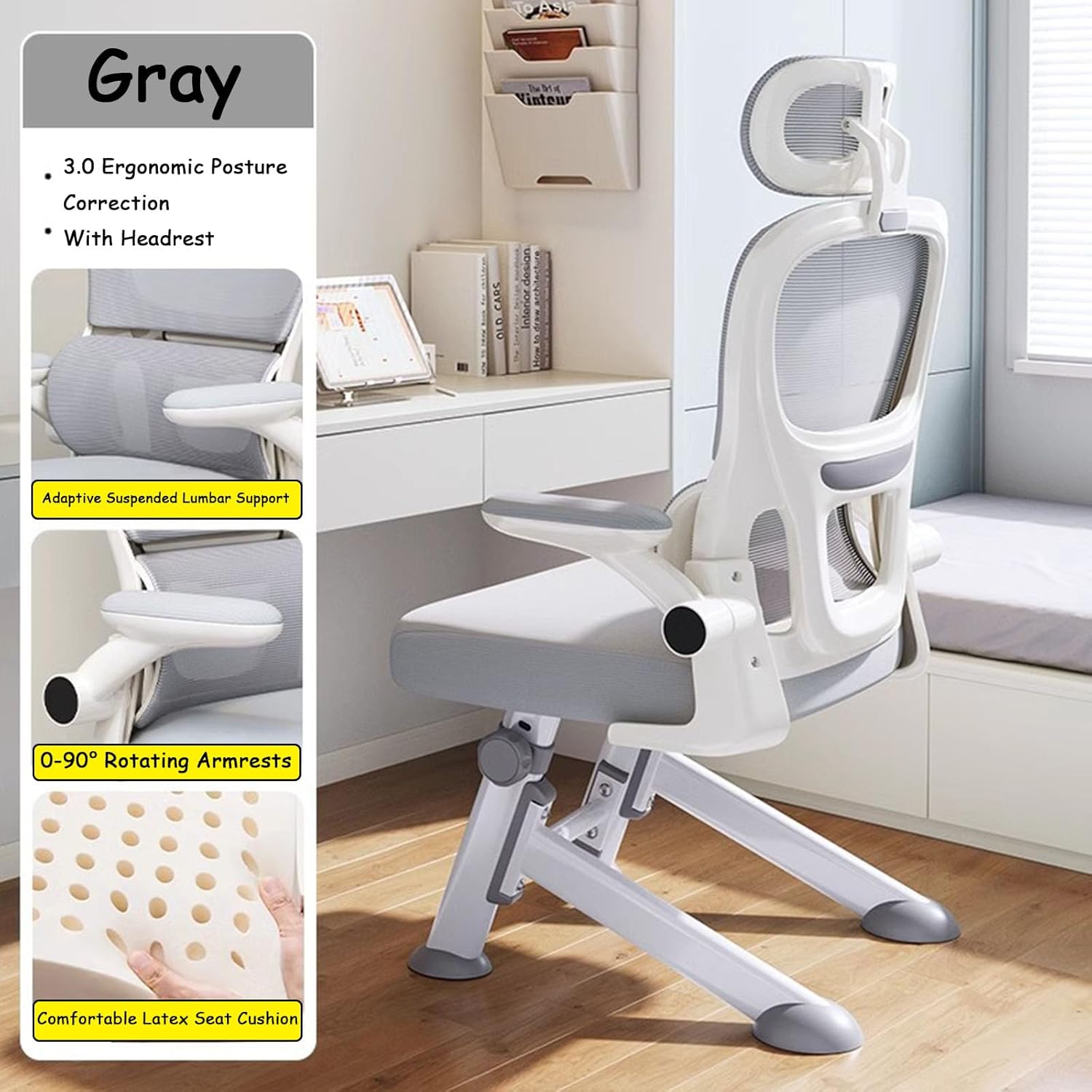 Looking for a study chair that adapts to your child's growth, provides neck and back support, and keeps them comfortable even during extended sitting? This upgraded youth-specific study chair is designed with every detail tailored to your child's growth needs, ensuring a more comfortable study posture and greater peace of mind for parents.Features:Thickened carbon steel frame with a low center of gravity provides increased stability and durability.Seven adjustable height levels accommodate heights from 140-180 cm, allowing for easy adjustment.Flexible headrest with curved, three-dimensional support provides relief from cervical spine pressure.90° tilting armrests allow for flexible adjustment of the distance between the desk and chair.Highly elastic and breathable 3D mesh keeps you comfortable even when sitting low.Specifications:Seat Material: MeshConstruction: Triangular, stable bevelArmrests: 90° tiltingSeat Height Range: 40-50 cm/15.74-19.68 inchesFrame Material: Thickened carbon steelPackage Includes:1 kid desk chair