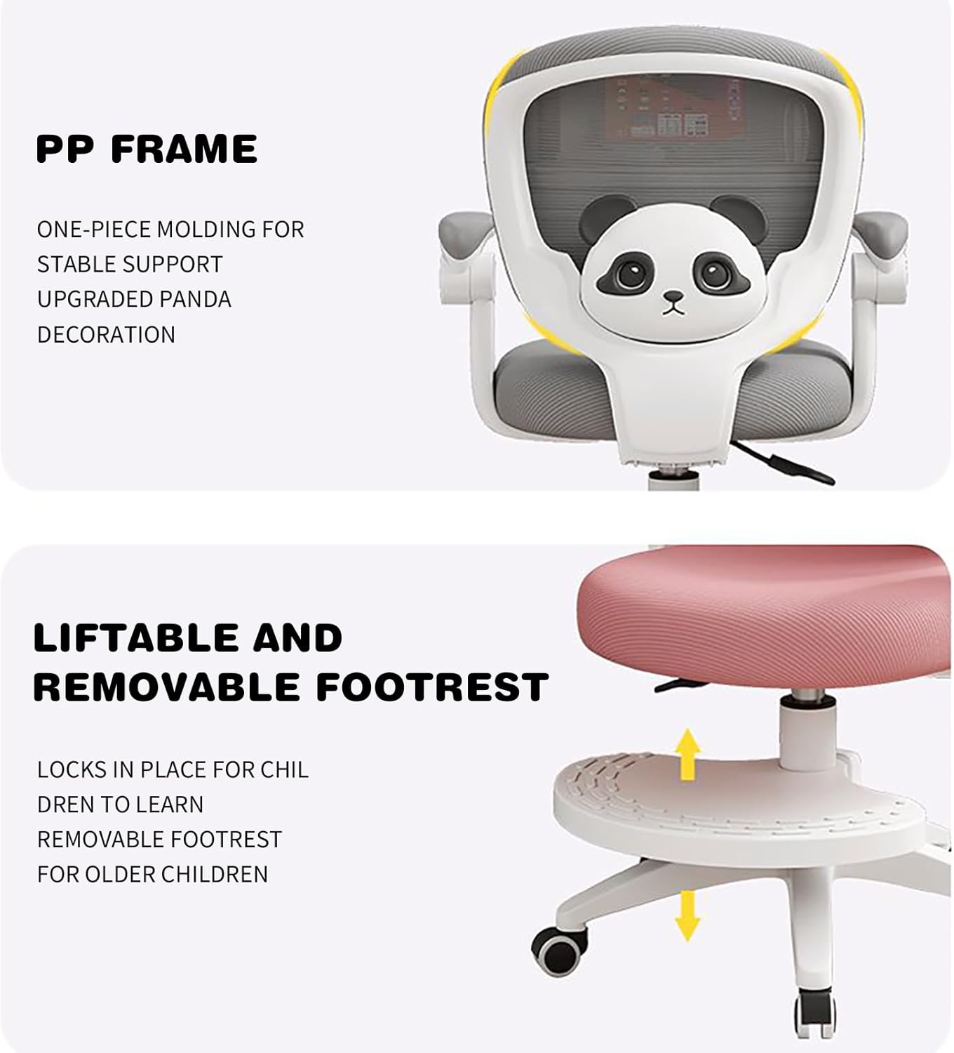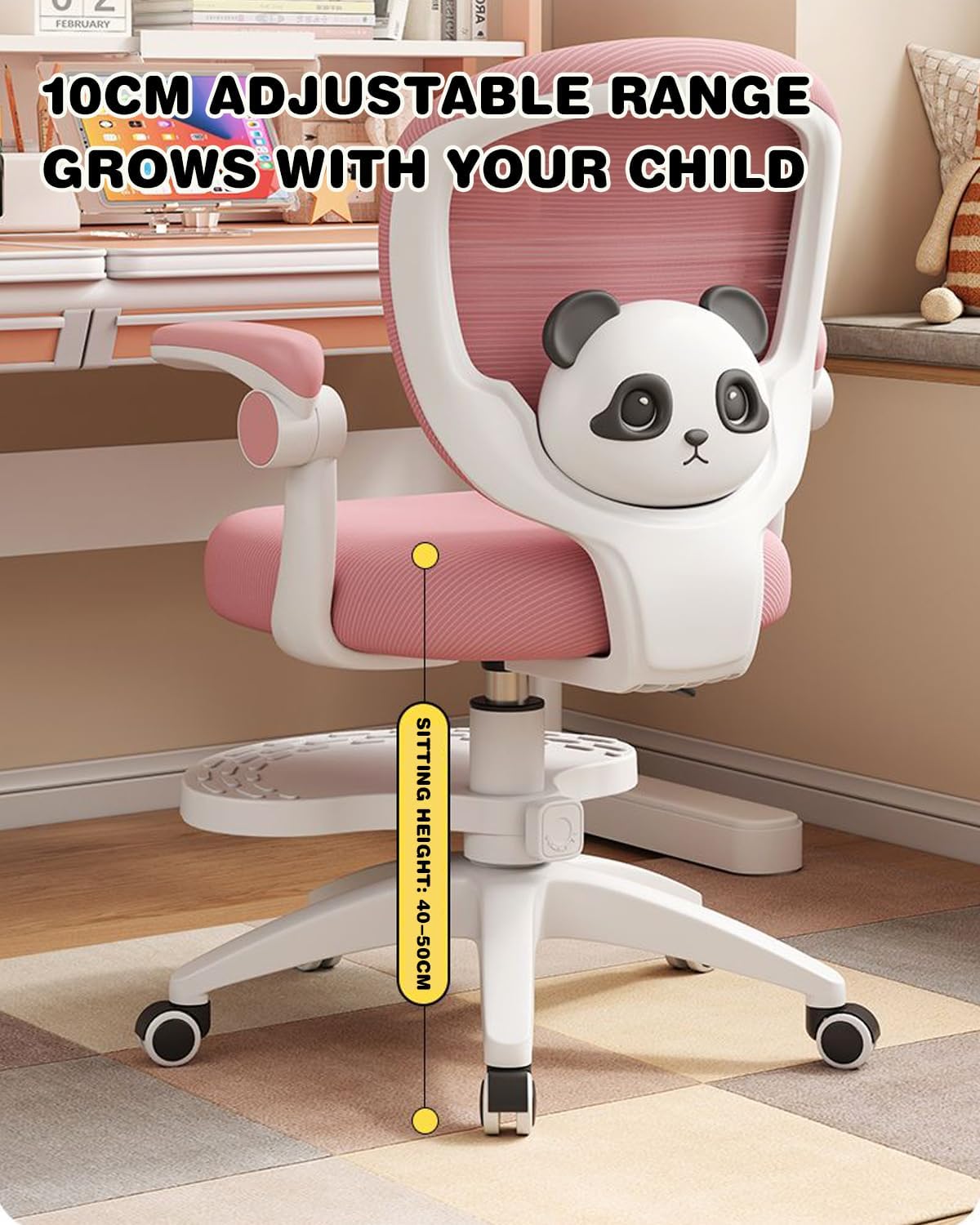 This children's chair supports 230 pounds and features a sturdy base and non-slip, adjustable feet. It's durable and suitable for a variety of occasions, from art creation to focused reading. Promote healthy sitting habits and enjoy long-lasting comfort!The high-density molded foam is durable, powder-free, and resilient, providing stable and comfortable support for long study sessions. The seat is made of breathable, wear-resistant fabric, making it durable enough to withstand daily use while keeping your child cool and comfortable.This practical study table fits 99% of common desks, making it even more practical! It assembles quickly, making it an ideal choice for bedrooms, studies, and more.Material: PU, sponge, polyesterDimensions: 44 cm x 46 cm x 41-51 cm (L x W x H)Seat Depth: 44 cmSeat Width: 46 cmSeat Height: 41-51 cmAge: 3+Weight Capacity: 230 lbsIncludes:1 children's desk chair1 user guide