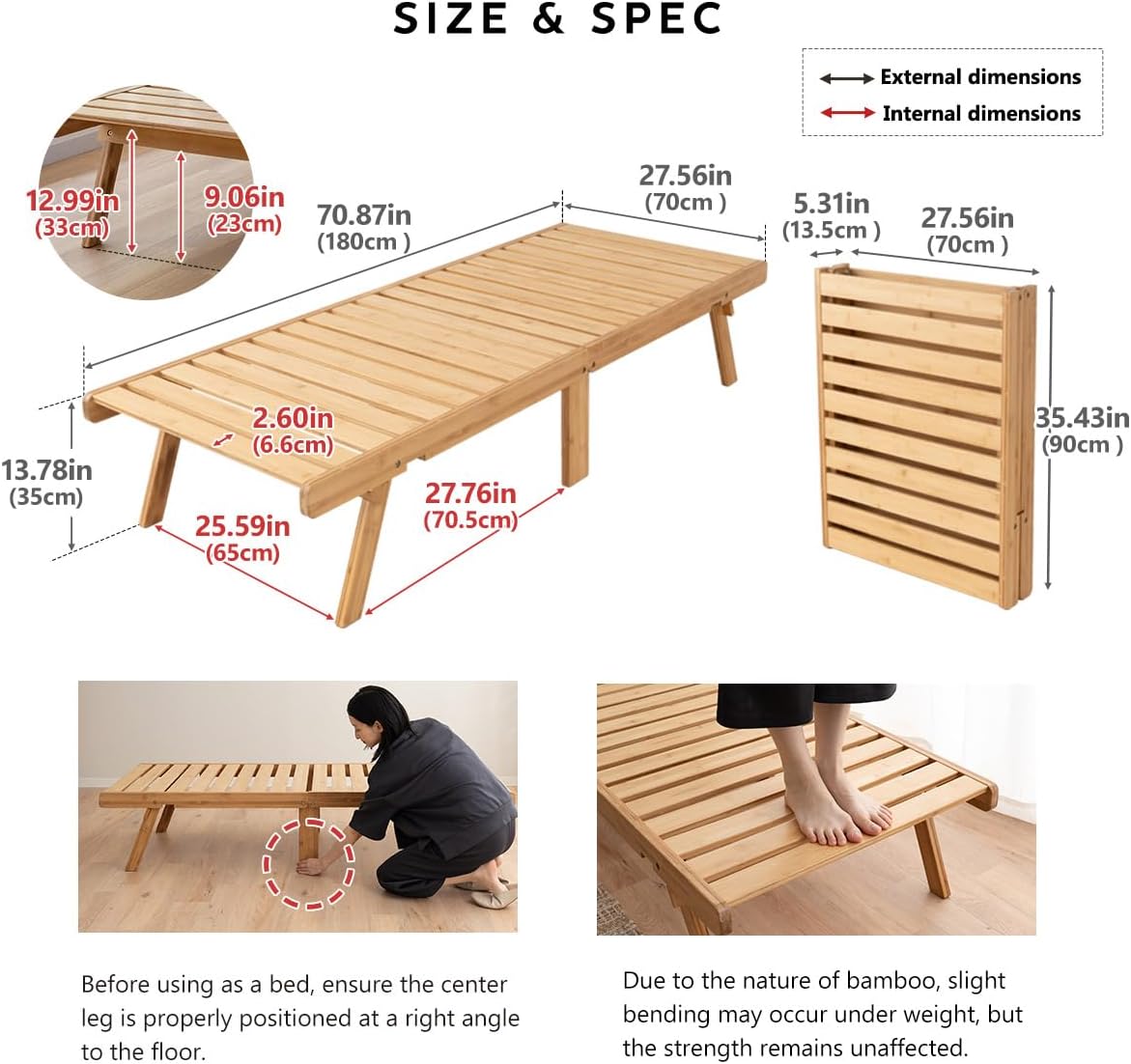 | Included Components | Folding slat bed |