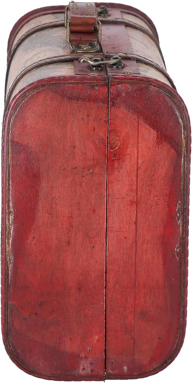 Feature: 1. Composite wood material, high grade texture, retro nostalgic production style, breaking the old fashioned appearance of traditional luggage, and more attractive. 2. The individual lock buckle does not require a key. It can be opened by flipping it to both sides. The operation is simple and convenient. The overall matching of the retro copper imitation process shows the retro flavor. 3. Strong handle, feels texture, no paddle, strong bearing capacity, no need to worry about breaking, firm and . 4. Large internal capacity, can hold a large number of items, is a good helper for your travels and business trips. 5. It adopts retro craftsmanship, which has strong functionality, good aesthetics, and the map is painted, innovative and unique. Specification: Item Type: Vintage Suitcase Material: Composite Wood Product Size: Approx.37.5x23x13.5cm/14.8x9.1x5.3in Weight: Approx.1246g/2.7lb Features: Retro Suitable Range: Home Storage, Decoration, Shooting Props, Window Display, etc. Package List: 1 x Box