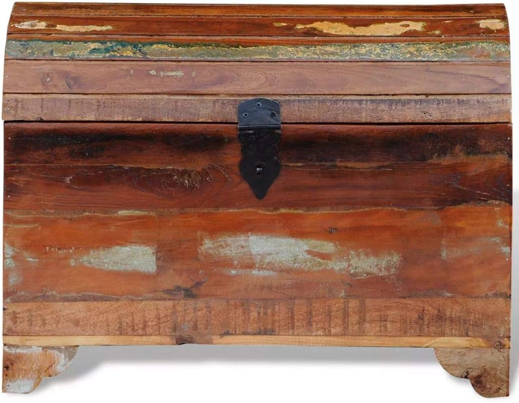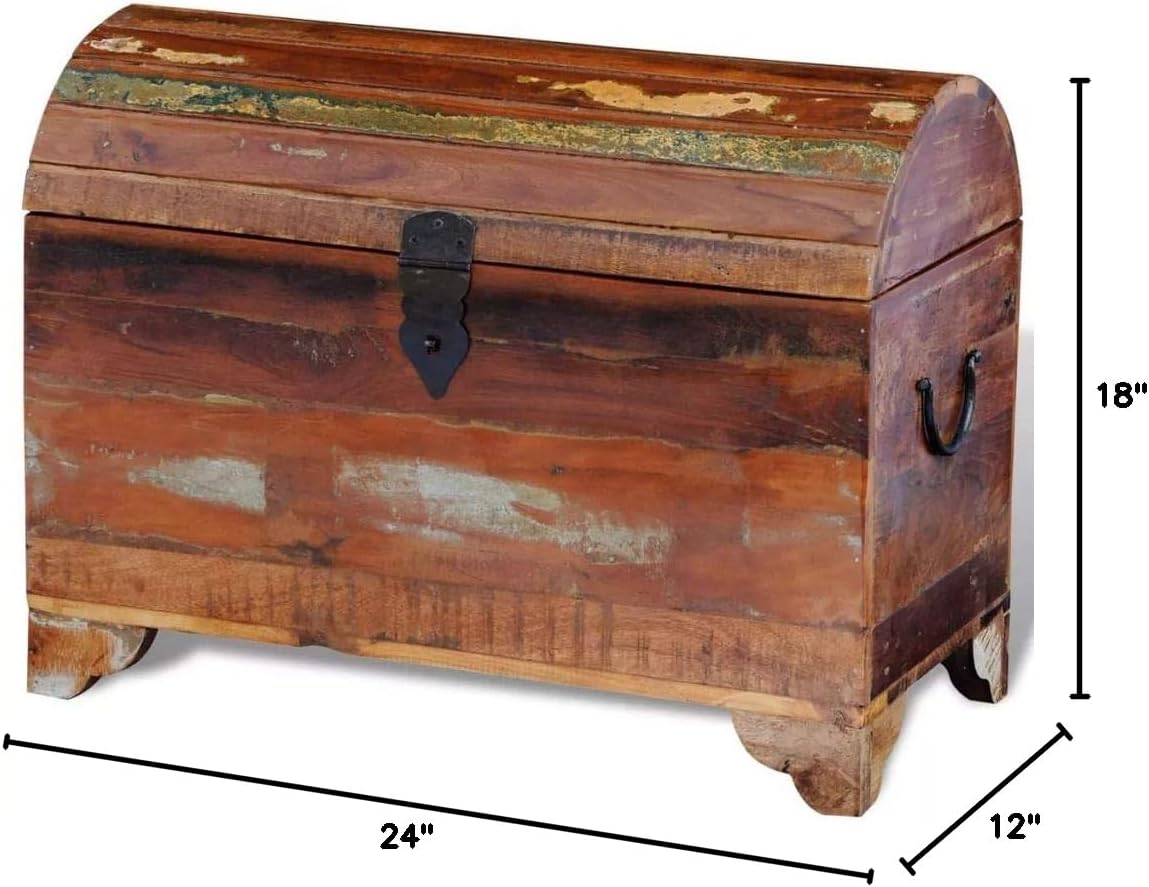 This antique-style wooden storage chest, a timeless living accessory for your home, brings large storage space and will surely help you to maintain your items in great order.This storage chest is made from reclaimed wood, which means that every piece of furniture is unique and slightly different from each other. The furniture made from reclaimed wood has characteristics of different woods like teakwood, sheesham wood, acacia, mango wood, saal wood etc. Reclaimed wood is solid, stable, durable, and beautiful. The nail holes or clear-faced grains bring their history with them and invite another generation to permeate them with their own. Keeping this piece of furniture at home will show your concept of resource conservation, environment protection and sustainable development.Pure handmade craftsmanship adds the vintage spectacular style to the storage chest and feasts you with exotic flavour. Every process of recombining, polishing, painting and waxing is elaborately prepared. The antique storage chest will surely be a perfect addition to your home!Important note: colors vary from piece to piece, making each of our storage chests unique; the delivery is random.Material: Reclaimed multi-color solid woodTotal size: 24" x 12" x 18" (L x W x H)Pure handmadePolished, partly painted & waxed
