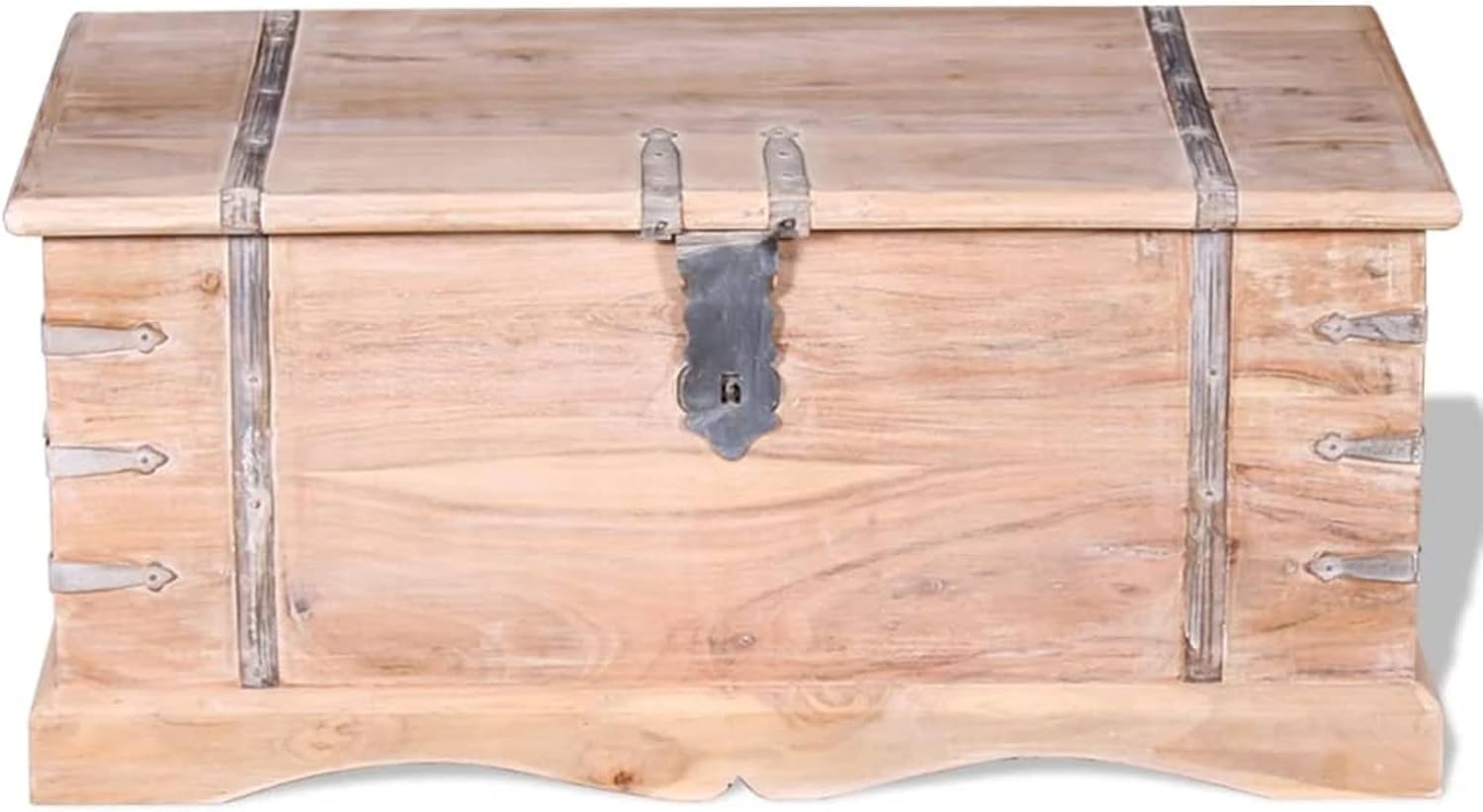 This unique storage chest, made of solid acacia wood with a white brushed finish, will make a great addition to your room. The storage chest offers ample storage space for clothes, magazines, books, toys, tools and other accessories. It features a front lock and two side handles. Thanks to its sturdy and flat top, this wooden box can also be used as a coffee table, living room table, side table, end table, etc. The storage chest is handcrafted from solid wood. Each piece of furniture is unique and slightly different from the other pieces thanks to the excellent craftsmanship and beautiful wood grain. Important note: Colors may vary from product to product, making each storage chest unique and one of a kind; delivery is random. Color: Brown Material: Solid acacia wood with white brushed finish Dimensions: 90 x 40 x 40 cm (L x W x H) With two side handles Lockable (lock is not included) We cannot ship to: Hiddensee, Pellworm, Hooge, Nordmarsch-Langeness, Gröde, Föhr, Nebel, Sylt, Langeoog, Spiekeroog, Wangerooge, Norderney, Juist, Baltrum, Borkum, Helgoland, Chiemsee. Next page of related sponsored products
