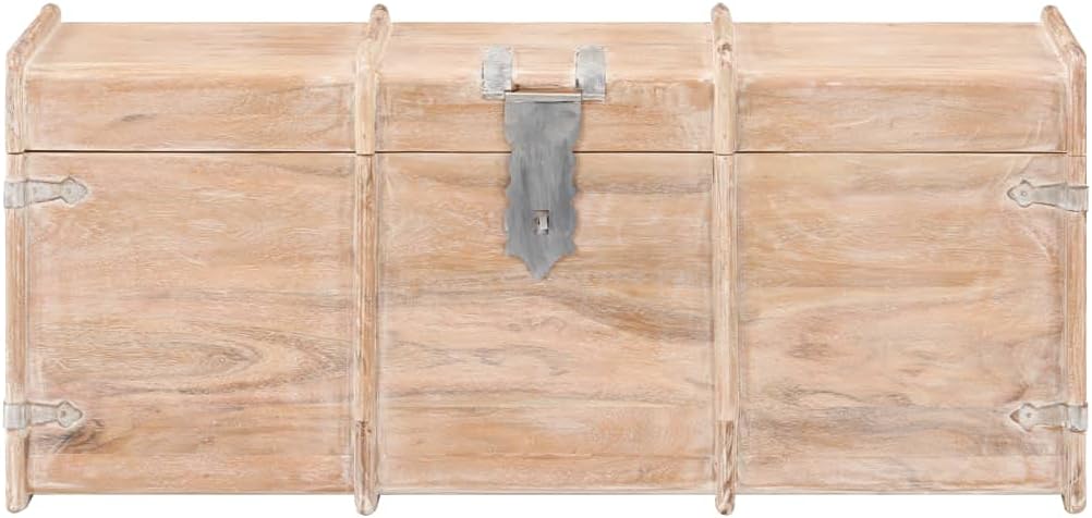 The wooden storage chest adds a simplistic look to your home decor and provides ample storage space for clothes, magazines, books, toys, tools and other accessories.This storage cabinet is made of solid acacia wood, making it stable and durable. It has a latch on the front and two handles on the side for lifting the chest. This storage box, with a stable flat top, can also be used to display your items. The craftsmanship and the beautiful wood grains make every piece of furniture unique and slightly different from the next.Important note: Colours and grains may vary from piece to piece, making each piece unique; the delivery is random.Material: Solid acacia wood with white finish, ironDimensions: 35.4" x 15.7" x 15.7" (W x D x H)LockableAssembly required: No