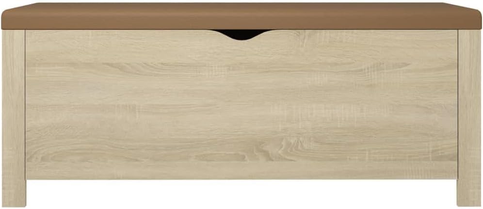 This Sonoma Oak Storage Box with Cushion is the perfect mix of practicality and style, adding a nice touch to your living space, mainly in entryways and living rooms. The modern design has a sleek rectangular shape that goes well with loads of interior styles while acting as a handy storage solution for blankets, shoes, or other essentials, neatly stored yet super easy to grab when you need them.Ample Storage: This storage box has loads of room inside for all your essentials, keeping your space neat and tidy.Cushioned Top: The cushioned lid makes it comfy for extra guests to sit on, so it’s both practical and welcoming.Stylish Design: With its lovely Sonoma Oak finish and clean lines, this piece really enhances the look of any room while sorting out your storage needs.Durable Material: Made from top-notch engineered wood, this box is made to handle daily use while keeping its lovely look, ensuring it lasts in your home.Recommended Use: Perfect for entryways and living rooms, it gives you extra seating and a classy storage solution, making it a versatile addition to your home.Color: BrownShape: RectangularMaterial: Engineered woodFinish: MatteIndoor/Outdoor: Indoor OnlyCover Included: NoRoom: Living RoomCapacity: Loads of space for cushions, toys etc.Maximum Number of People: 1Dimensions: 15.7 x 41.3 x 17.7 in (W x L x H)Surface Height: 17.7 inWeight: 43.21 lbsSeat Depth: 15.7 inSeating Capacity: 1Ladder: NoDelivery Contains: Storage box with cushionAssembly Required: YesRecommended Number of People for Assembly: 2