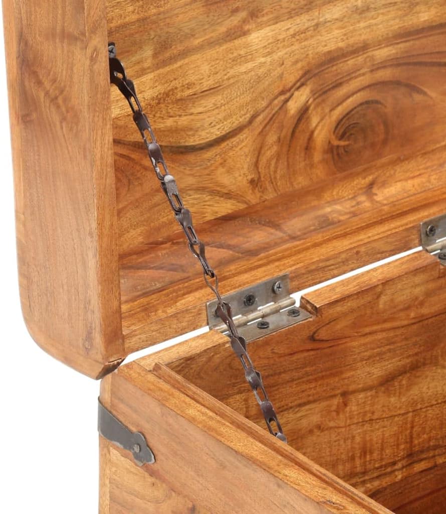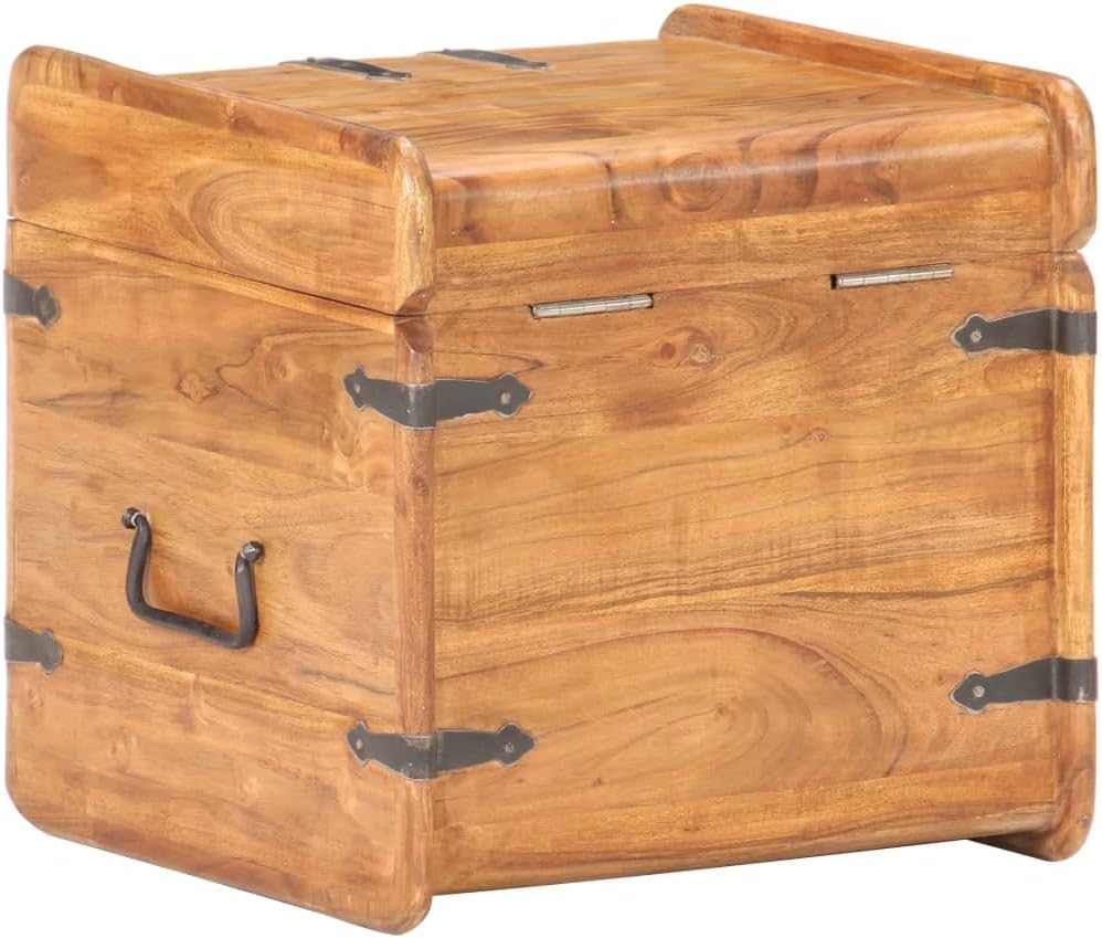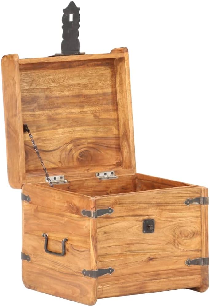 Cabinets & Storage / Storage ChestsThe wooden chest adds a simplistic look to your home decor and provides ample storage space for your items.The chest is made of solid acacia wood, making it stable and durable. It has a latch on the front and two handles on the side for lifting the chest. This storage box, with a stable flat top, can also be used as a bedside table. The craftsmanship and the beautiful wood grains make every piece of furniture unique and slightly different from the next.Important note: Colors and grains may vary from piece to piece, making each piece unique. The delivery is random, ensuring the exclusivity and individuality of your product.Material: Solid acacia wood with a natural finish, ironDimensions: 15.7" x 15.7" x 15.7" (W x D x H)LockableAssembly required: No