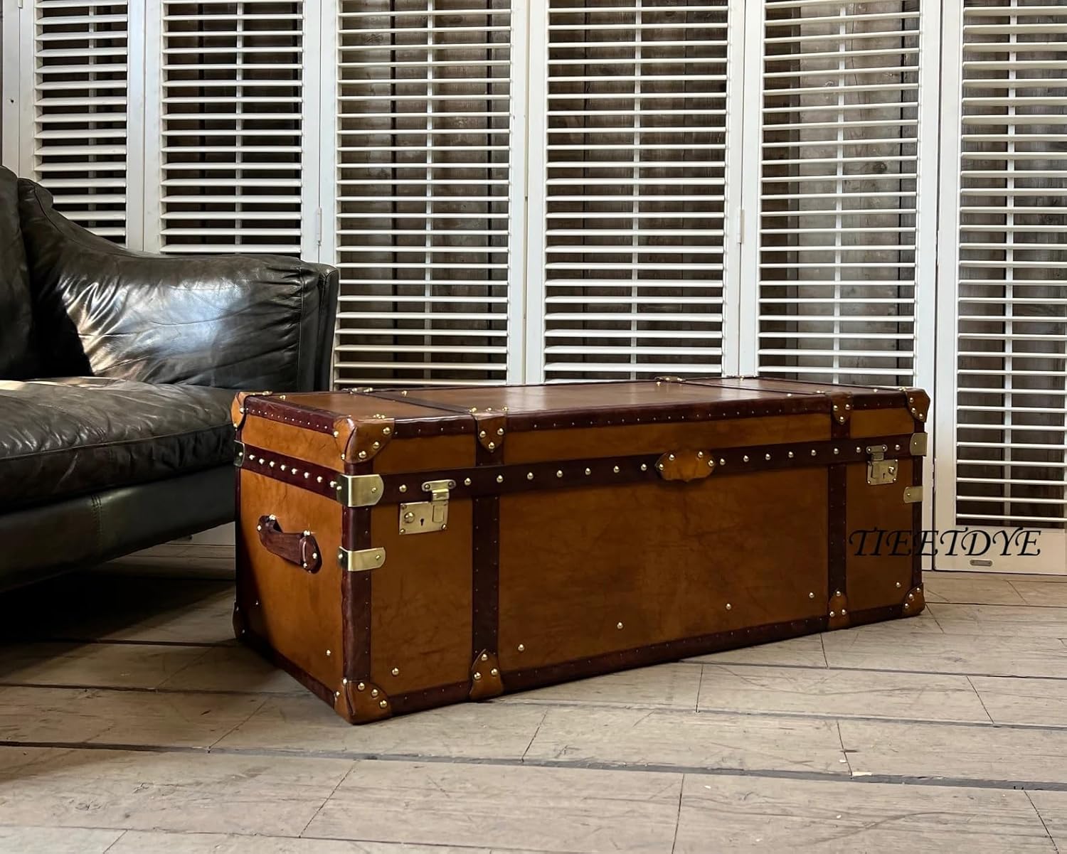 Add timeless character and practical storage to your home with this Classic Wooden & Leather Trunk Chest with Storage. Designed to combine vintage elegance with everyday functionality, this beautifully crafted side trunk serves as both a decorative statement piece and a spacious storage solution. Made from durable wood with rich leather accents, this trunk features a classic design inspired by traditional travel chests. The warm, rustic finish, detailed leather work, and reinforced edges give it an authentic handcrafted look that complements a wide range of interiors, including classic, rustic, industrial, and vintage décor styles.