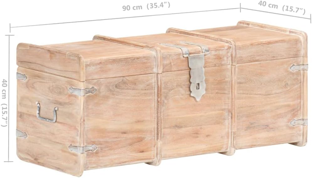 This Solid Acacia Wood Storage Chest combines awesome design with modern looks, making it a fantastic addition to any living room or bedroom. Its smooth finish and unique wood tones not only give you tons of room for your things but also add a décor touch to your space.This storage chest has loads of room, making it a top choice for keeping clothes, books, tools, and items organized and easy to grab.Built from solid acacia wood, it’s durable and reliable, ready to stand the test of time.Super versatile, it works indoors and outdoors, whether in the garden or inside your home.The clean, modern design adds a touch of class to any room, blending in with your decor without being over the top.Features like the secure lid with a latch and handy side handles mean it's easy to store and access your items with no fuss.Color: WhiteShape: RectangularMaterial: Solid Acacia woodFinish: WaxedIndoor/Outdoor: Indoor / OutdoorCover Included: NoRoom: BedroomCapacity: Lots of space for clothes, magazines, books, tools, and other items.Dimensions: 15.7 x 35.4 x 15.7 in (W x L x H)Surface Height: 15.7 inWeight: 44.18 lbsLadder: NoDelivery Contains: Storage chest made of solid acacia woodAssembly Required: No