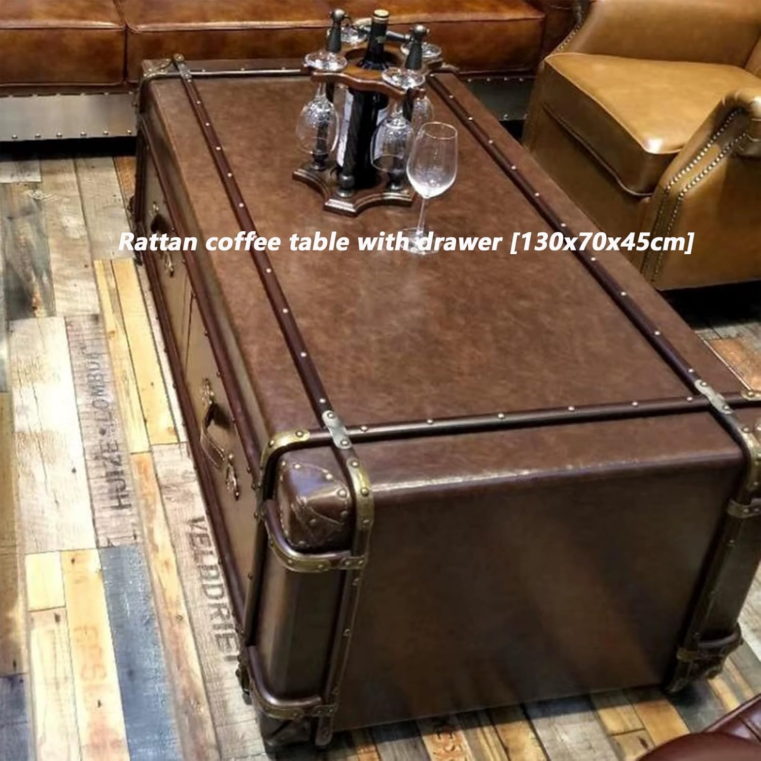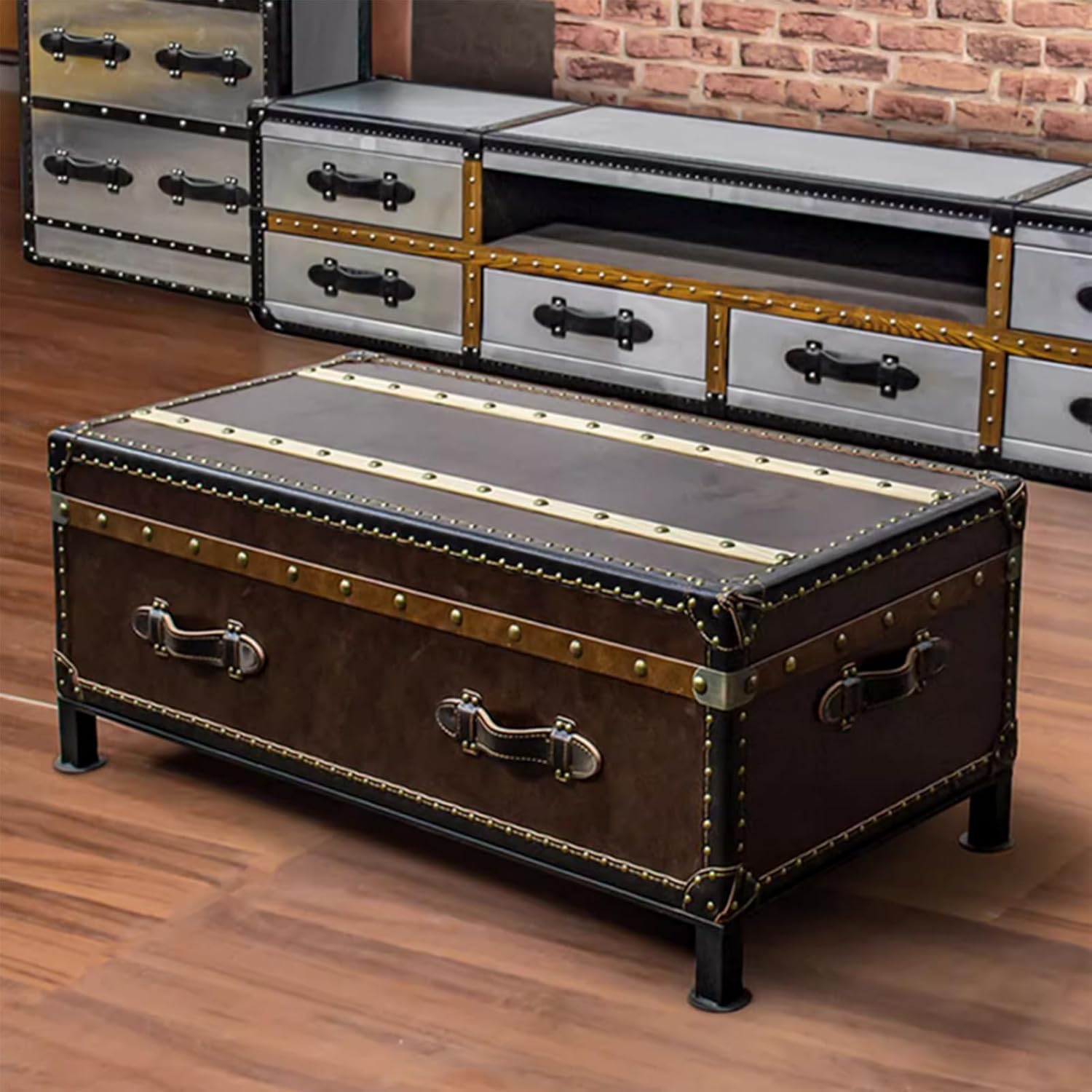 The rich vintage textures complement the warm tones, creating a classic aesthetic of low-key luxury.No parts to assemble, this storage bench is fully assembled and carefully packaged. It is stylish and beautiful right out of the box.It is perfect for the living room, bedroom, office or any place you want.Specifications:Name: Vintage Coffee TableSize: See the pictureStyle: As shown in the pictureMaterial: Solid wood + cowhidePackage Contents:1 * Vintage Coffee Table