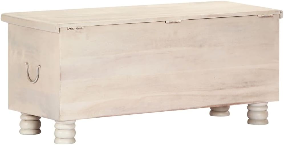 This Vintage White Wooden Storage Box is made to fit right in with your home decor while giving you loads of storage space. Made from solid acacia wood, its rustic white finish makes it both a practical piece and a stylish addition to your living area.Charming Vintage Design: The rustic white finish gives this storage box a vintage vibe, perfect for enhancing any room's look.Spacious Interior: This storage chest offers generous capacity to store blankets, toys, or other bits, keeping your living area tidy.Quality Craftsmanship: Made from solid acacia wood, this box is built to last, ensuring longevity and reliability.Multi-functional Use: More than just storage, it doubles as a coffee table or side table, adding practicality to your living space.Easy Maintenance: The smooth surface is easy to care for, needing just a quick wipe with a dry cloth to keep it looking great.Color: White Shape: RectangularMaterial: Solid Acacia woodFinish: Distressed Indoor/Outdoor: Indoor OnlyCover Included: NoRoom: Living RoomCapacity: Plenty of storage roomDimensions: 15.7 x 43.3 x 17.7 in (W x L x H)Surface Height: 17.7 inLeg Height: 3.1 inWeight: 48.24 lbsLadder: NoDelivery Contains: Storage BoxAssembly Required: No