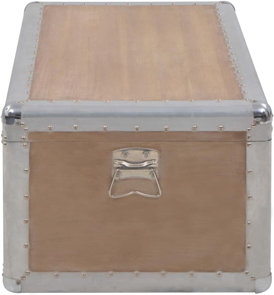 This classic wooden storage box will make a decorative addition to your rooms. It can also be used as a coffee table in your living room.This highly stable and durable storage chest was crafted from solid fir wood and also exudes vintage charm and gives its rustic characteristics. The sturdy top is ideal for placing fruit baskets, vases or some other decorative items. The box has ample space for keeping your various items neatly organized and within reach. The storage chest is designed with two portable handles to be easily moved around the house.This storage box is easy to assemble.Color: BrownMaterial: Solid fir wood + MDF + non-woven fabric + steelDimensions: 35.8" x 20.5" x 15.7" (W x D x H)Polished and paintedWith ample storage space