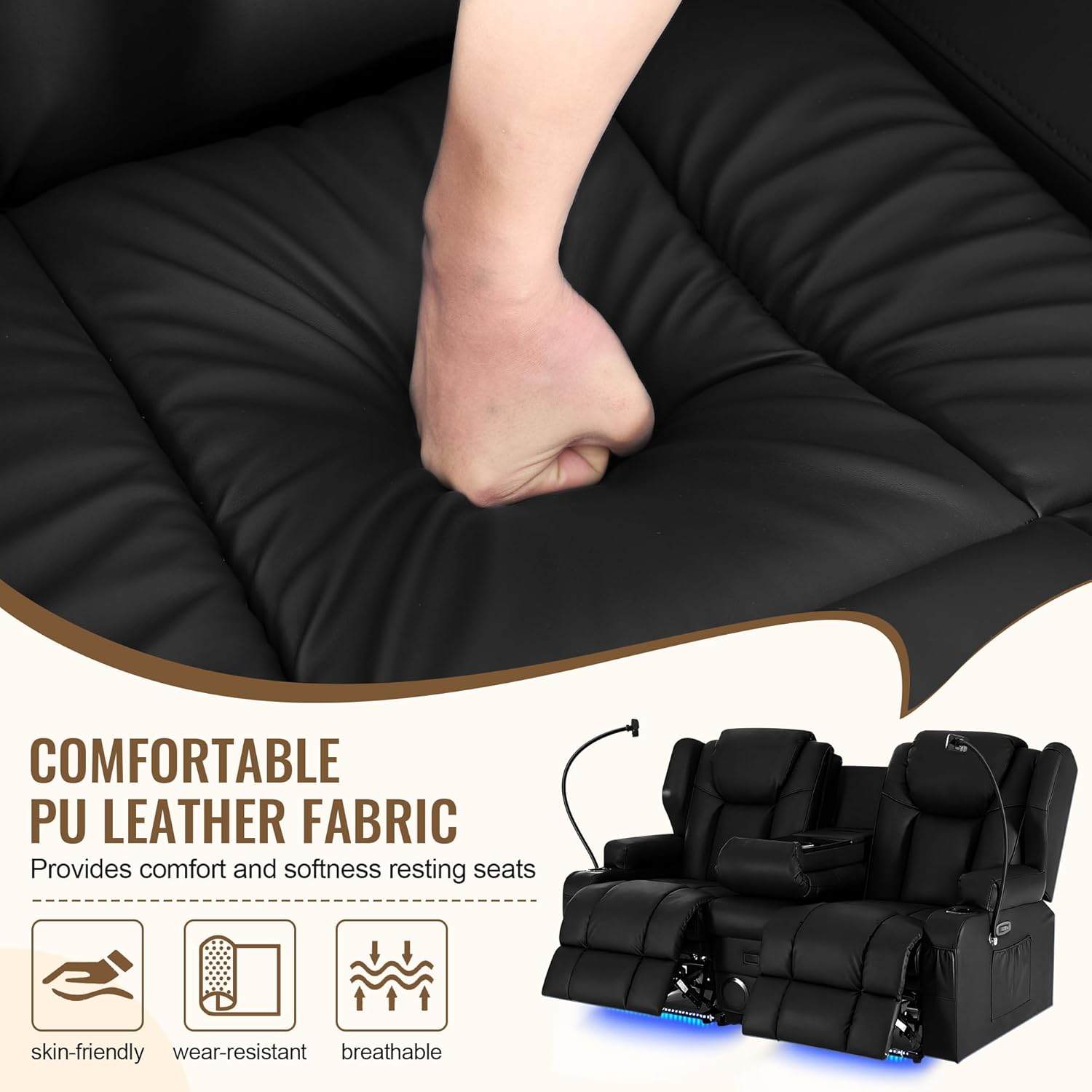 | Additional Features | Adjustable Backrest, Armrest, Power Recliner, Speakers |