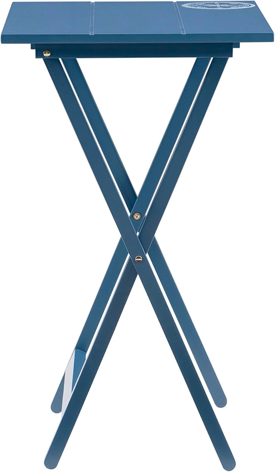 Perfect for eating a meal in front of the TV or pulling out as extra dining space for guests, this set of 4 blue tray tables is great to have around the house. The plank style tops with a compass decal fold out and provide plenty of space for a single place setting, extra snacks or drinks that don’t fit on your dining table. Each tray supports up to 20 lbs and can easily stow away on the matching stand equipped with a handle for convenient portability.