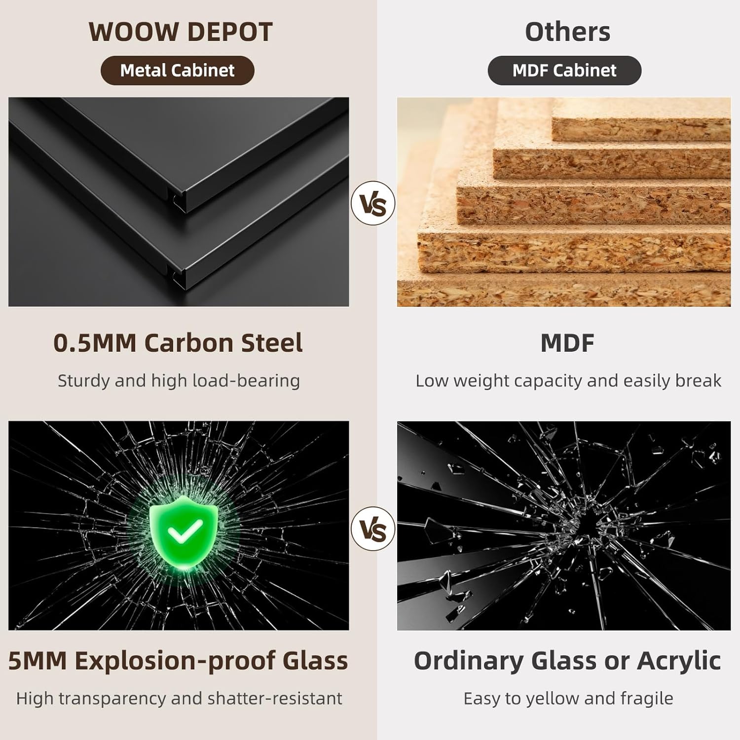 • 【Heavy-Duty Steel Construction】Made from premium cold-rolled steel, this media cabinet offers stronger support than typical particle board ones. The reinforced structure provides excellent stability and load-bearing capacity for heavy equipments. It is also waterproof, moisture-resistant, and easy to clean for long-lasting durability.